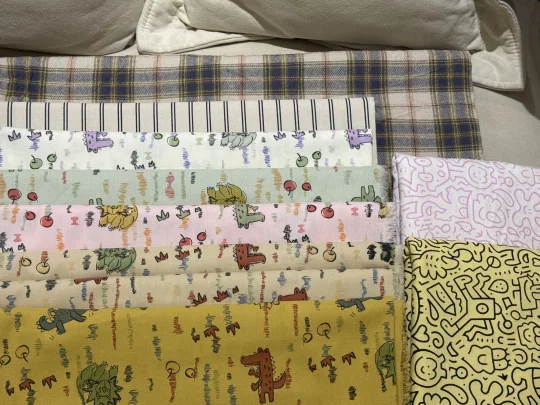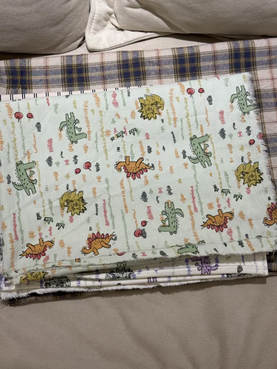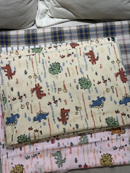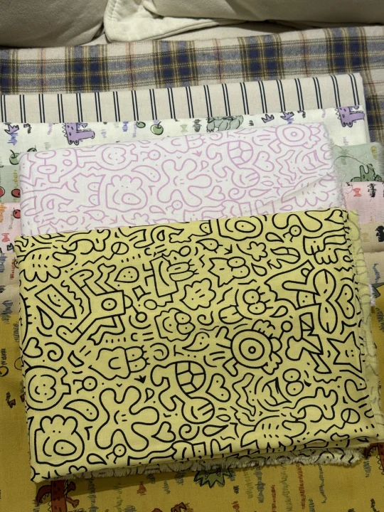 入秋了,又到了可以给小黄做衣服的季节了 虽然技术很菜 但回老家还是忍不住去轻纺城逛了一天 战况如上 怕人造纤维的有静电小黄穿着不舒服 所以除了牛仔(感觉比较耐脏又耐磨,打算包在护肘的棉垫外面)其余都是纯棉的 今年势必要让缝纫机回本[失望R]