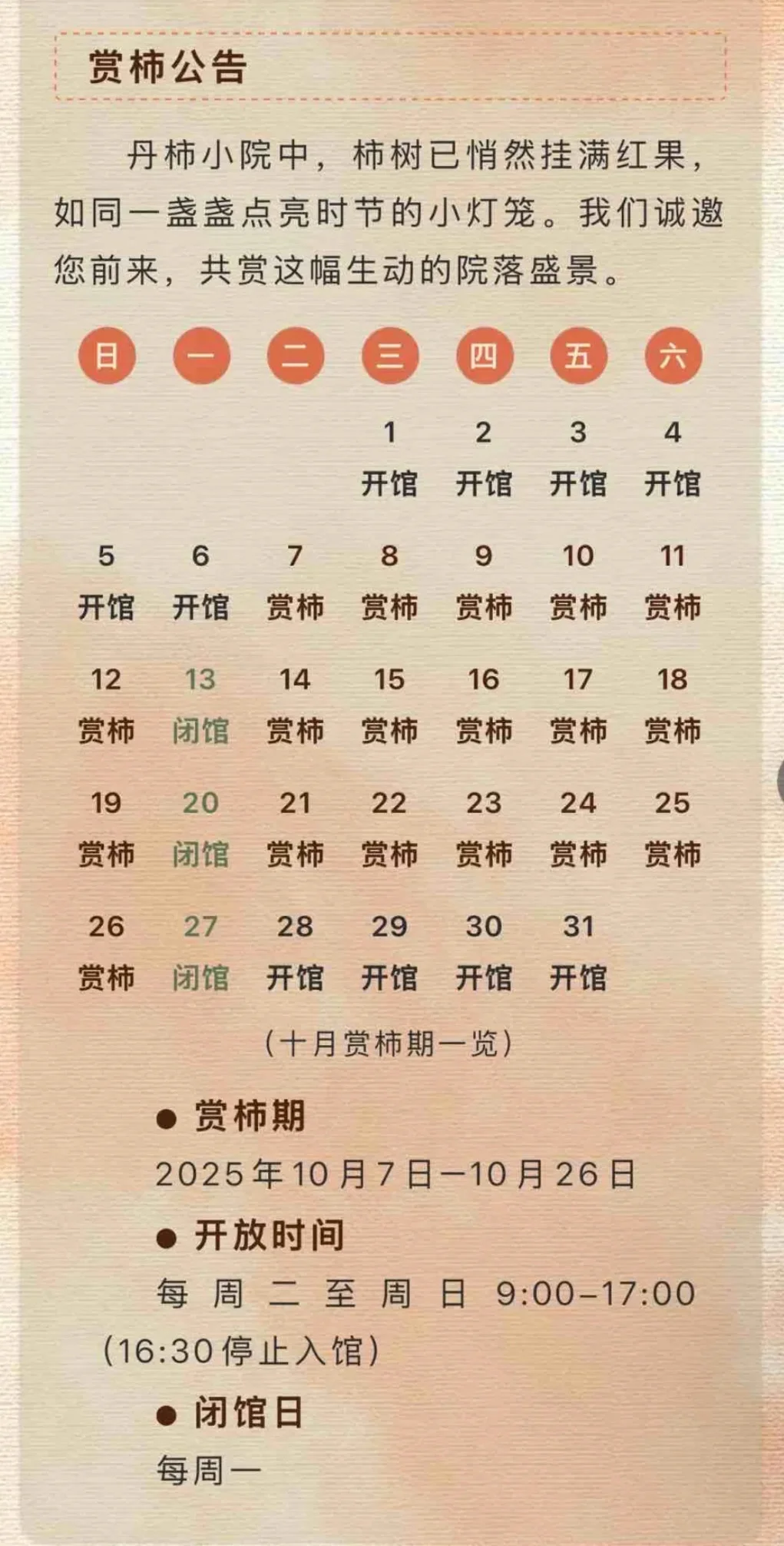 所以故居在26号左右会闭馆,后面柿子就开始掉了,工作人员也会摘了。