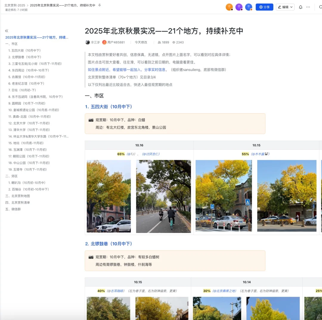 [打卡R]图2:我和热心网友们,一起整理的北京主要赏秋实况,每天会更新主要有黄叶地方的照片,变黄进度情况,都是真实原图,无滤镜,无调色