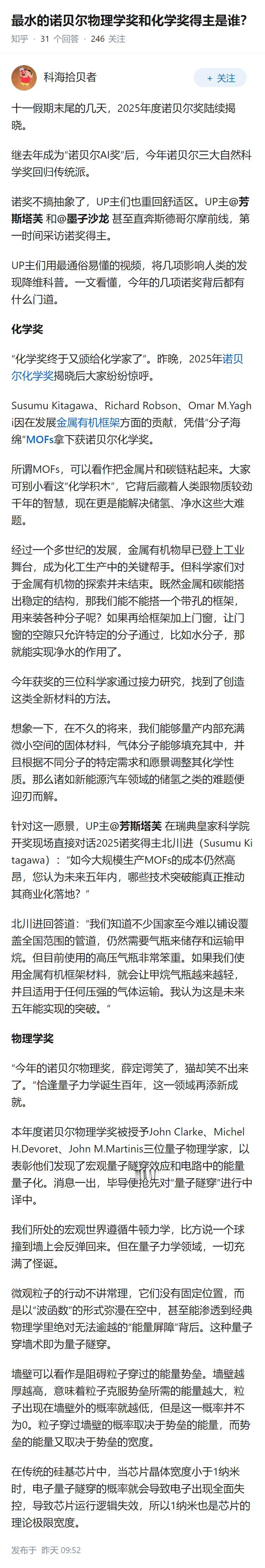 最水的诺贝尔物理学奖和化学奖得主是谁?