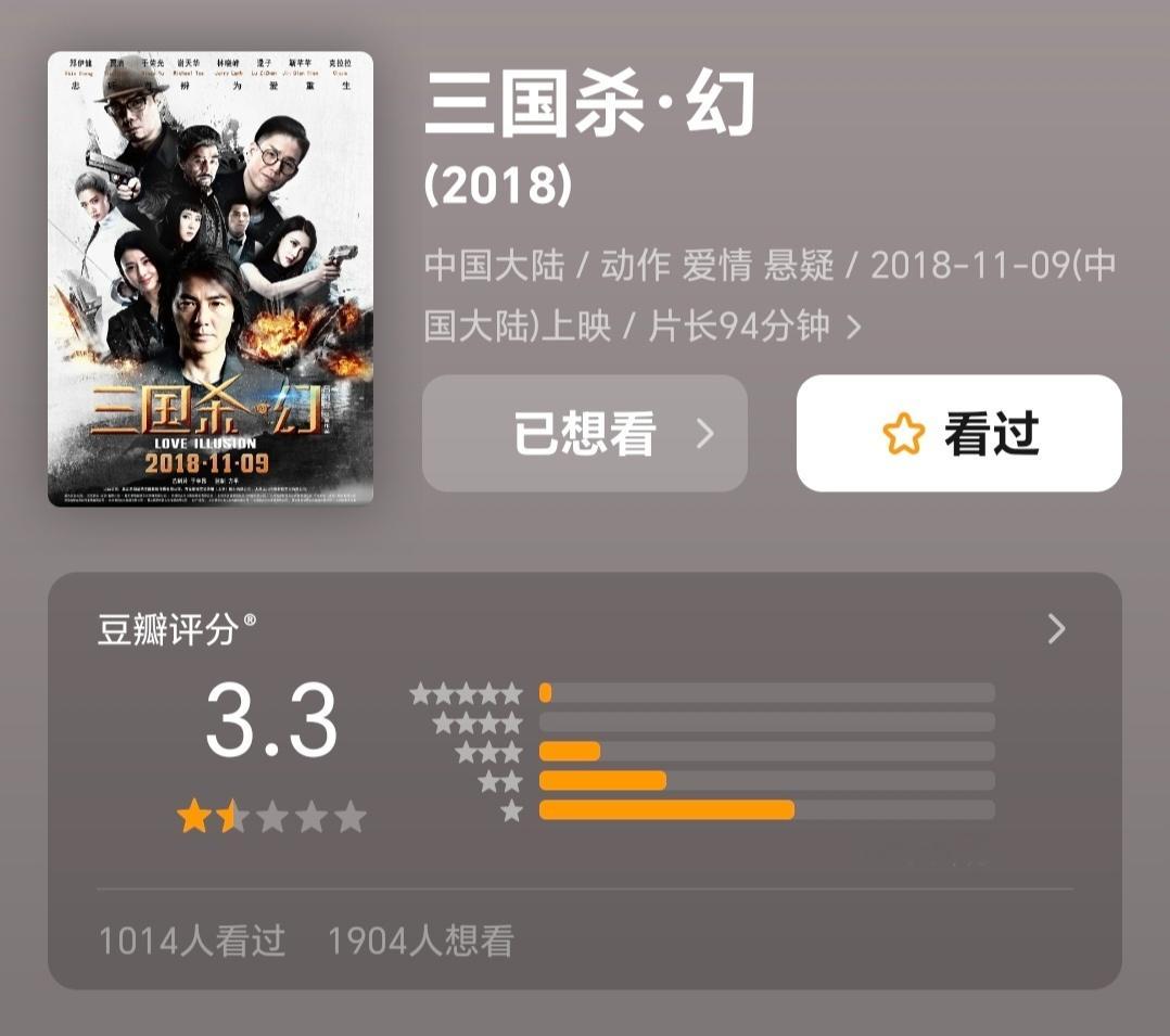 而且参演大多数电影都稀烂的不忍直视,翻了半天豆瓣,想找一部上4分的代表作都难。