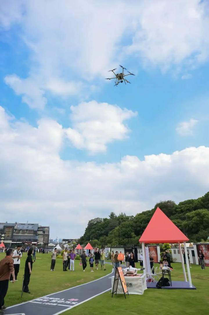 在凯文·凯利和机器人玩耍的时候,迅蚁无人机的工作人员下单了四杯德寿宫咖啡。5分钟后,无人机的轰鸣声响起。在空中盘旋一会儿后,一根绳索缓缓降下,四杯咖啡稳稳落地。