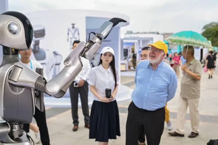 随着凯文凯利演讲的开启,在吴山广场的2025杭州未来生活嘉年华正式开启。今天下午,凯文凯利用一个半小时逛完了展会,完成了73年人生中的许多“第一次”。