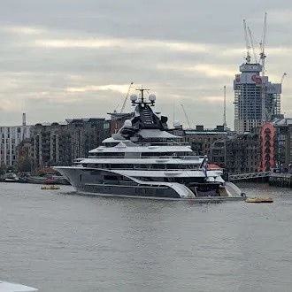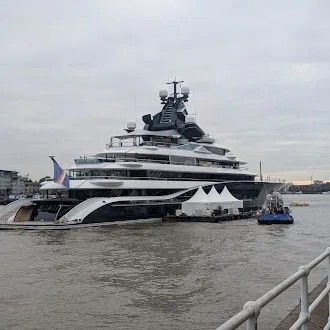 直播吧10月18日讯《太阳报》报道,英超富勒姆俱乐部老板、身价近110亿英镑的沙希德-汗,其价值高达3.45亿英镑的超级游艇近日被发现停泊在伦敦的泰晤士河上,靠近著名的塔桥。