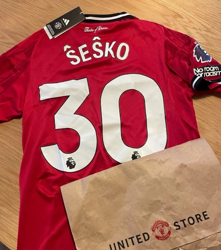 球迷Jaka在社媒上表示,自己从曼联官方在线商店购买了舍什科的30号球衣,发现舍什科姓氏中的变音符号被颠倒,两个向下的箭头朝上。