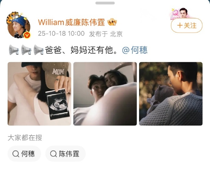 陈伟霆何穗官宣生子,分享新生命到来的喜悦,没有混淆生活阶段信息,陈伟霆剧里剧外都好命,现实的幸福与剧中角色的顺遂相互映衬,展现出生活与角色的共鸣,传递出温暖的氛围。陈伟霆剧里剧外都好命陈伟霆何穗没有官宣结婚陈伟霆何穗官宣生子