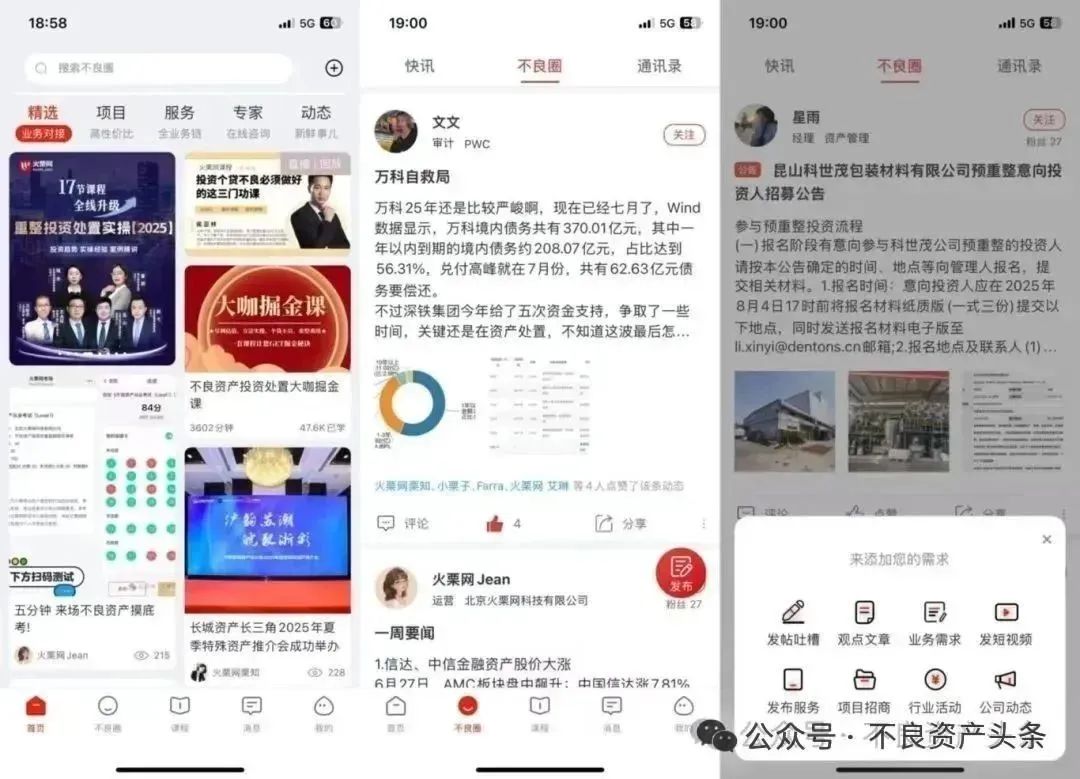 不良圈是火栗网App中重要的社群。不良圈的创建初衷是为大家提供交流合作的平台,根据用户需求,设置了8种发布类型:发帖吐槽、观点文章、业务需求、发短视频、发布服务、项目招商、行业活动、公司动态共8种。用户们可根据自身需要在不良圈内发布内容。