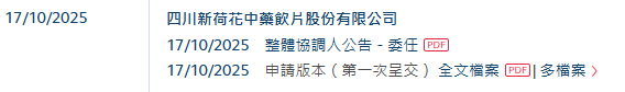 2025年10月17日,来自四川成都高新技术产业开发区的四川新荷花中药饮片股份有限公司SichuanNeautusTraditionalChineseMedicineCo.,Ltd.(下称"新荷花”)在港交所递交招股书,拟在香港主板上市。这是继其于2025年4月3日递表失效之后的再一次递表。