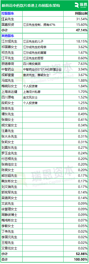招股书显示,新荷花在香港上市前的股东架构中,