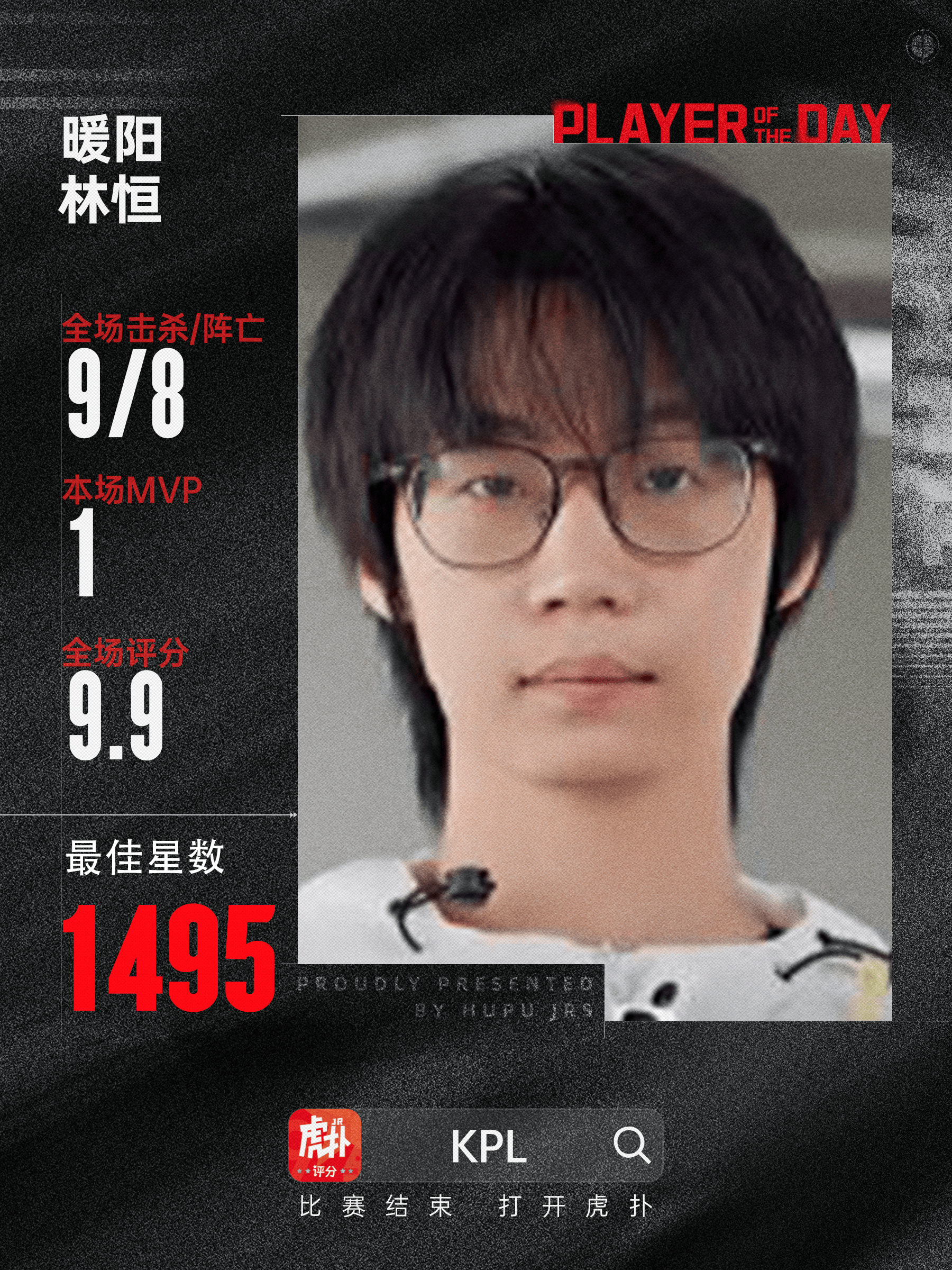 最终暖阳选手以9.9的评分,总星数1495(排除一星)斩获昨日最佳选手!