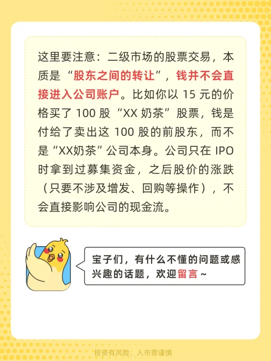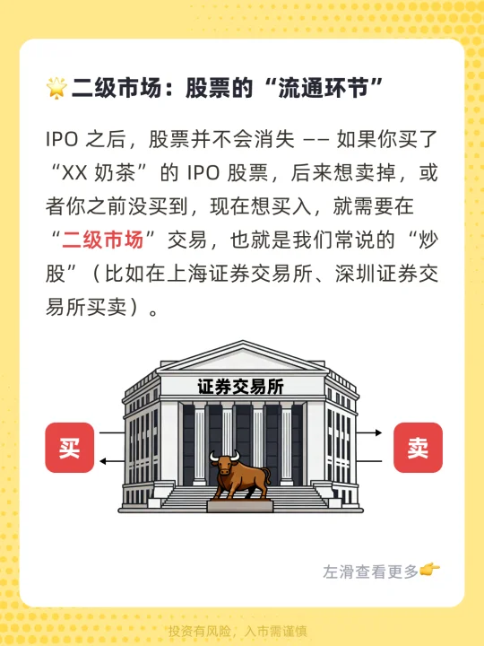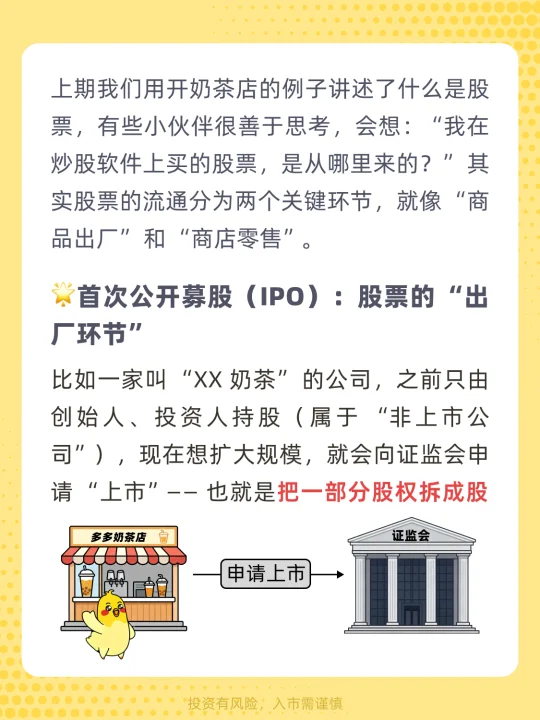 [萌萌哒R]宝子们好~ 前面我们用开奶茶店的例子讲述了什么是股票📈 有些小伙伴很善于思考🤔 👉会想:“我在炒股软件上买的股票,是从哪里来的?” 其实股票的流通分为两个关键环节2️⃣ 就像 “商品出厂” 和 “商店零售” 一起来看一下吧~[派对R]