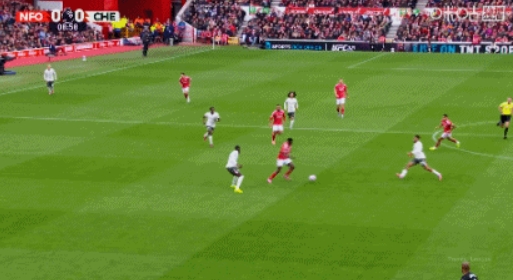 比赛第9分钟,查洛巴传球失误,安德森禁区内扣过防守后自己滑倒。