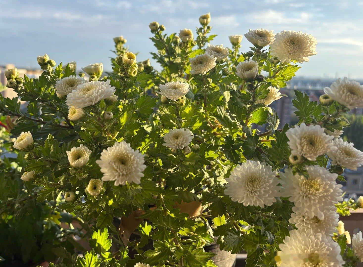 早上去菜市场时看到花店上新了,尤其喜欢绿菊花,我花15块钱搞了一盆!
