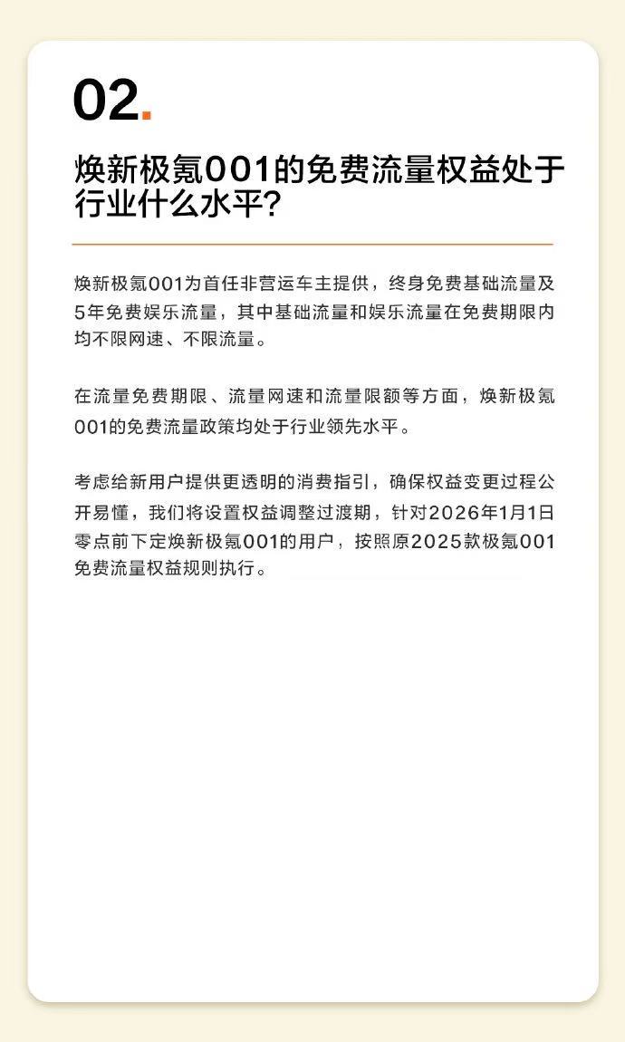 比如这次焕新极氪001的娱乐流量,友商就给1-2年,极氪上来给了5年免费;