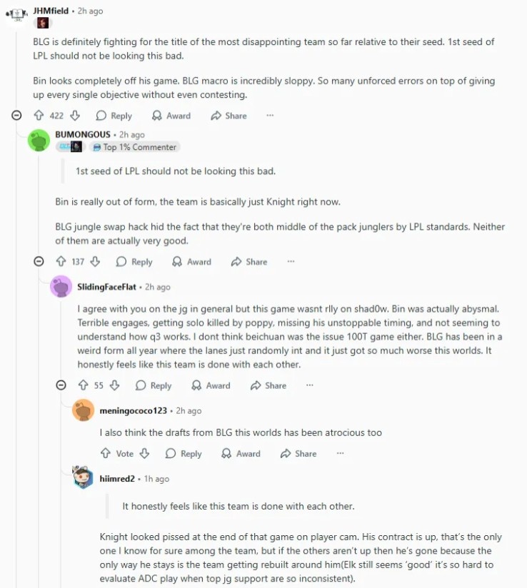 相比他们的种子顺位来说,BLG绝对是在争夺迄今为止最令人失望的队伍这个头衔。LPL的一号种子不应该看起来这么差劲。