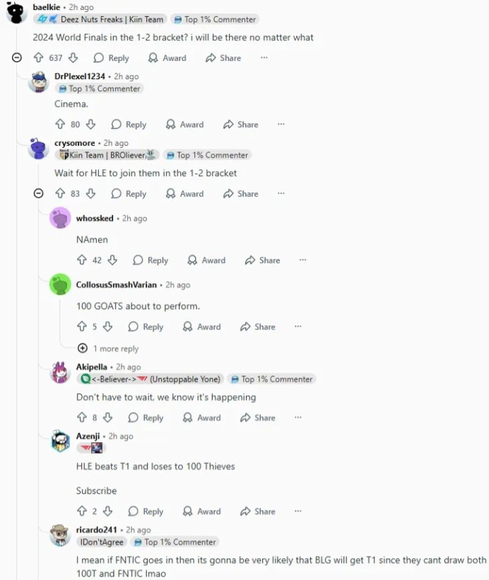 所有人都在谈论FLY抽到了好签,但BLG抽到了三个西方队伍,其中还有两个三号种子,他们的战绩却是1-2。