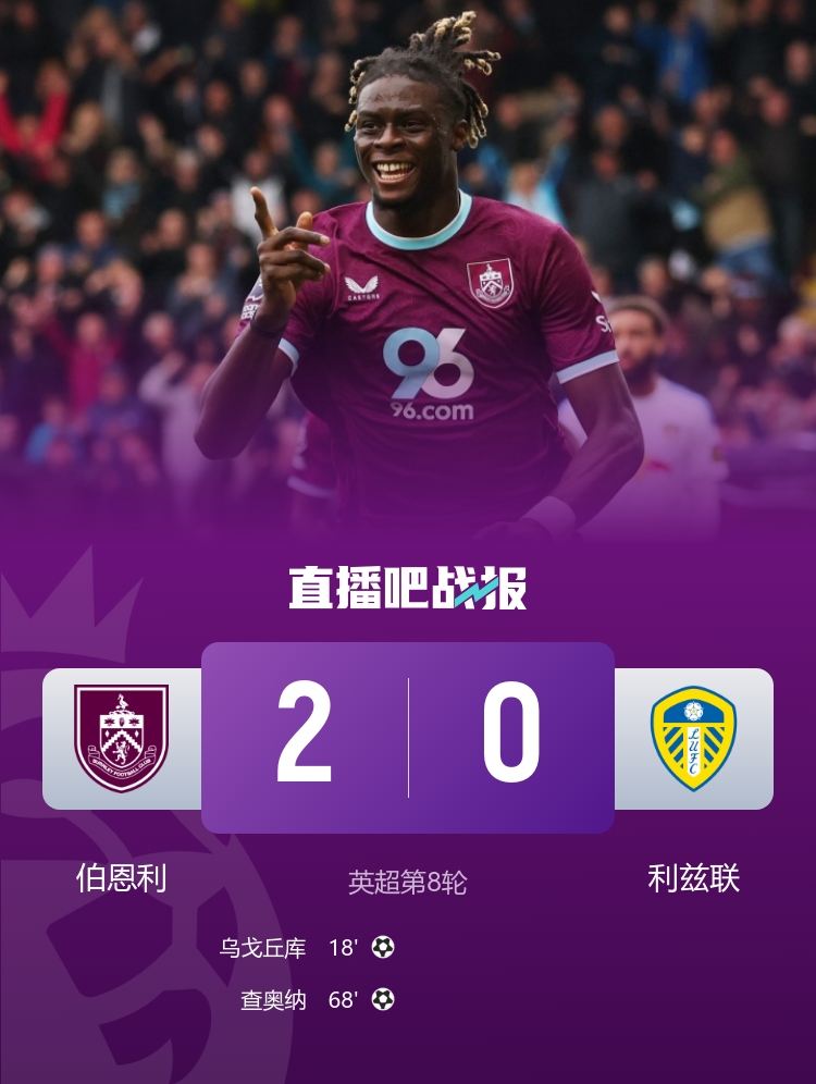 英超-伯恩利2-0利兹联 查奥纳世界波乌戈丘库建功