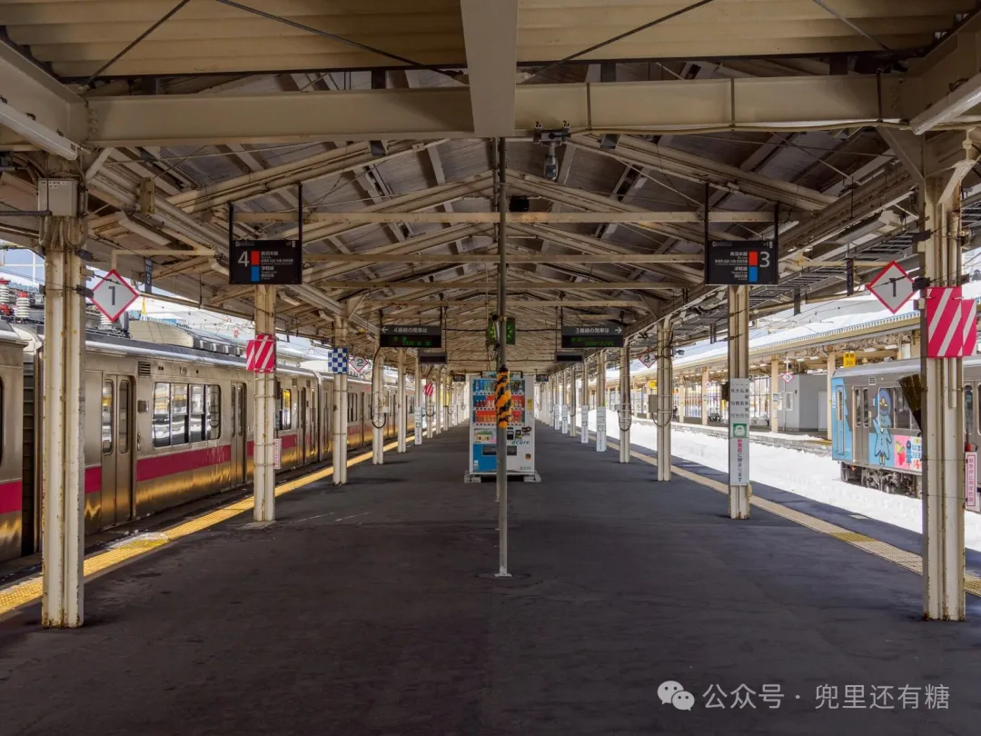 笔直的平台长约300米,根本看不到前方。目前列车主要是一两节车厢的短途列车,但明显太长。