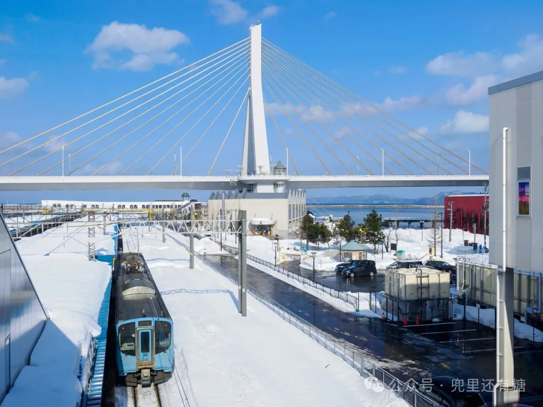 我在冬天的青森站下车,随着人群来到通往检票口的天桥。突然从灯火通明的窗外望去,映入眼帘的是在蓝天上拔地而起的青森湾大桥和脚下窥视的青森湾。当我欣赏着纯白的雪与蓝色的对比时,我看到周围有很多游客在拍照。本州最北端的门户风景似乎让很多人着迷。