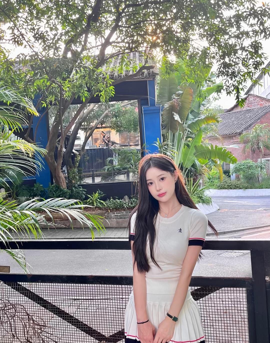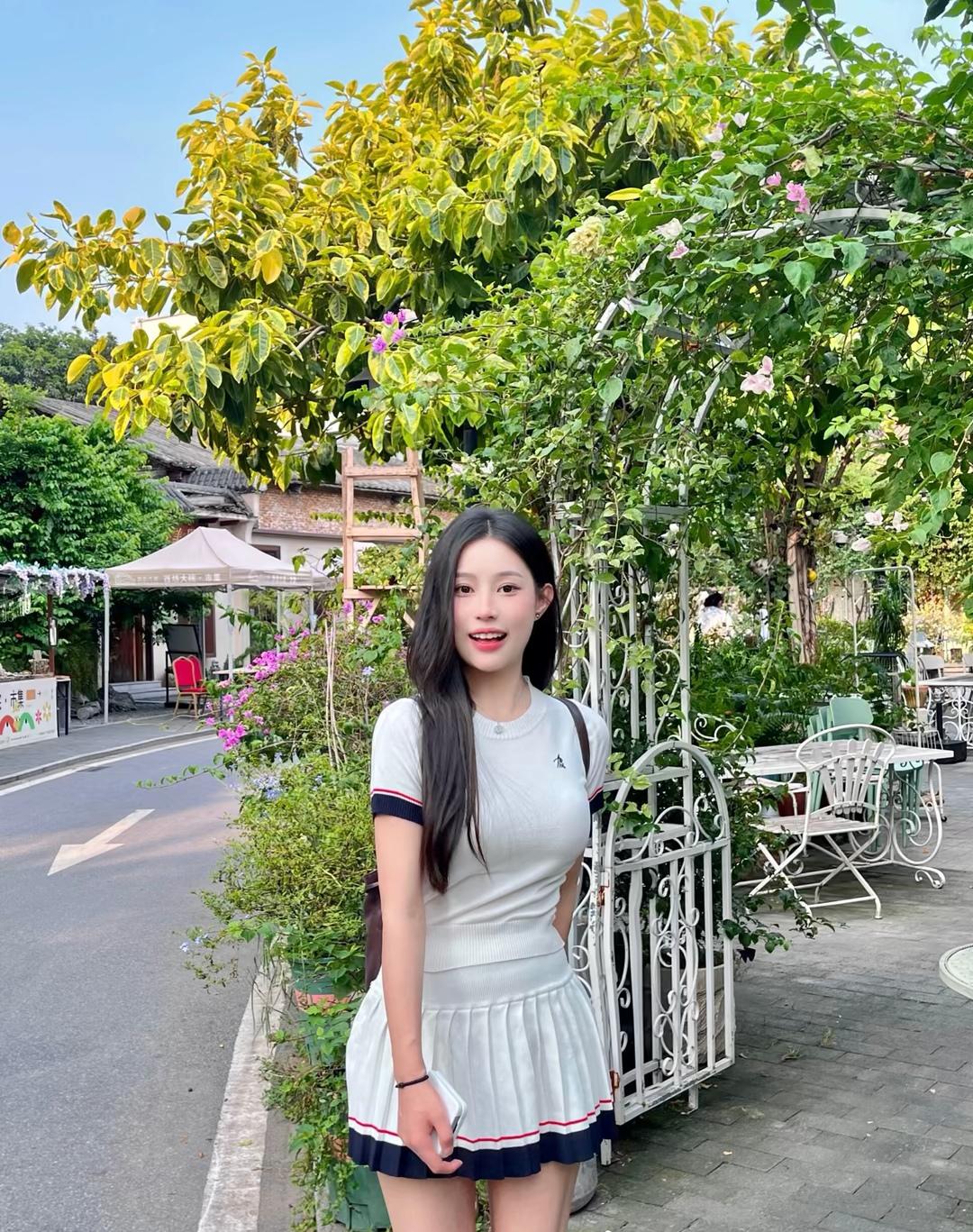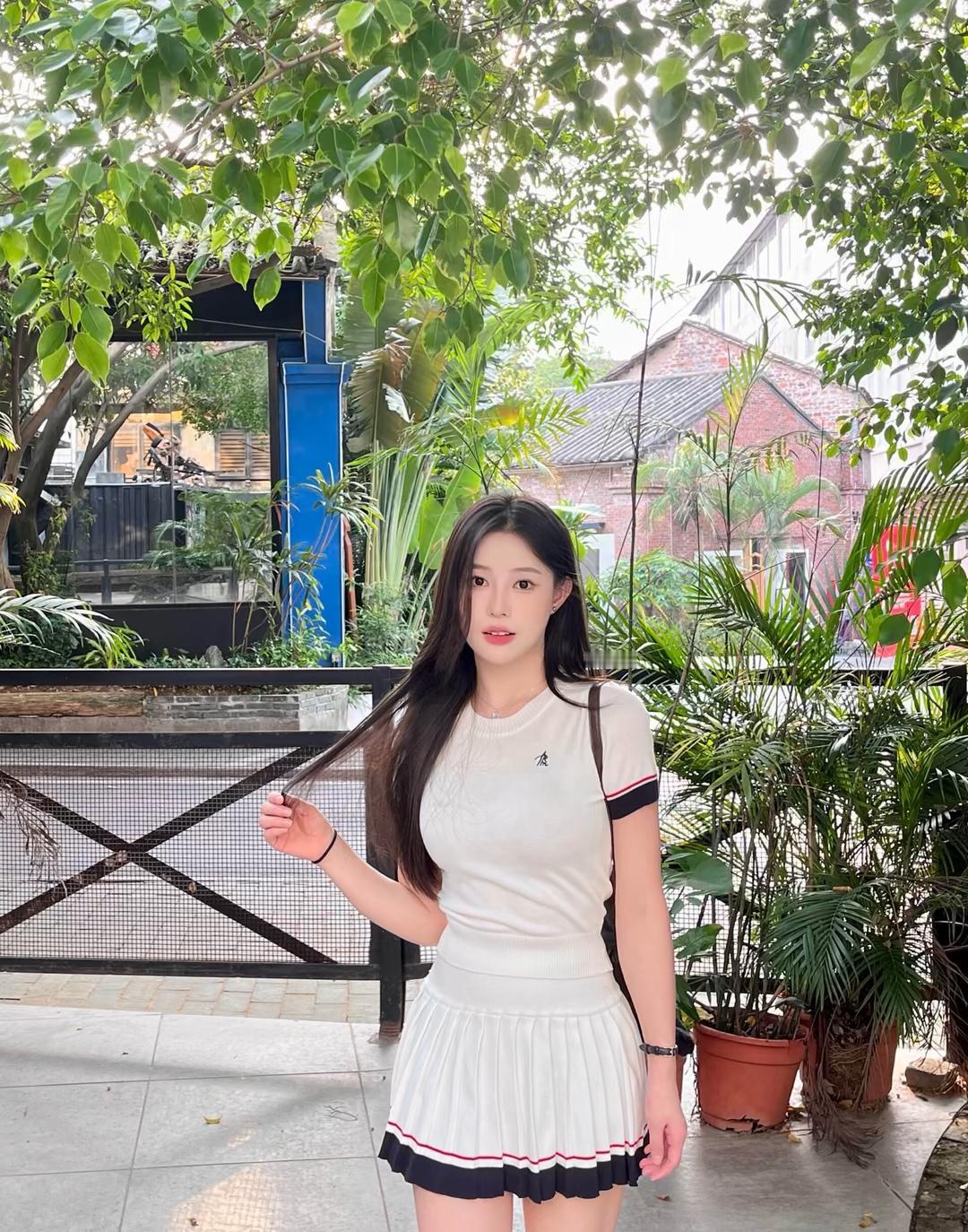 夏日清新穿搭,白色短裙与T恤的完美搭配,轻松自在,阳光下的美好时光。🌞👗👟