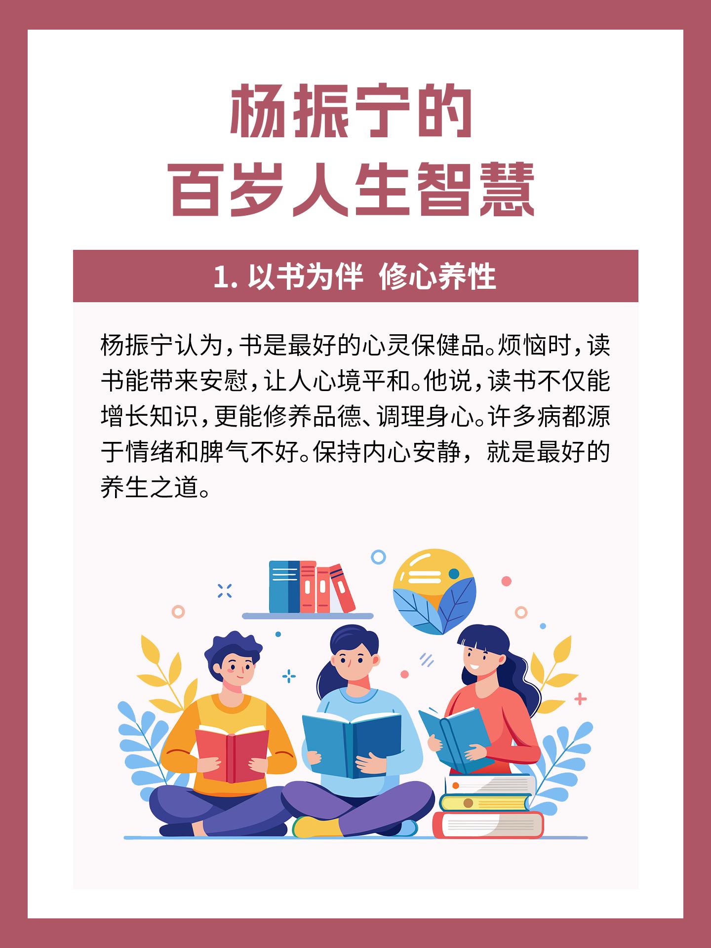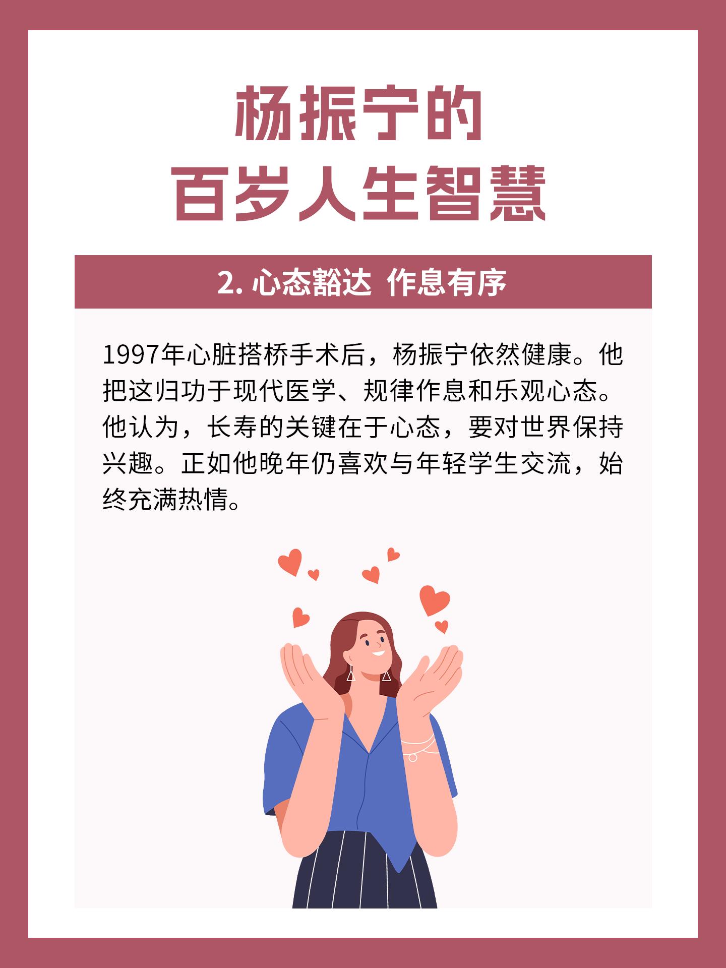 杨振宁先生的百岁人生智慧!杨振宁先生虽已百岁辞世,但他留下的不仅是卓越的科学贡献,更有一套质朴而通达的生命哲学。愿我们亦能从中汲取养分,从容生活,优雅老去。