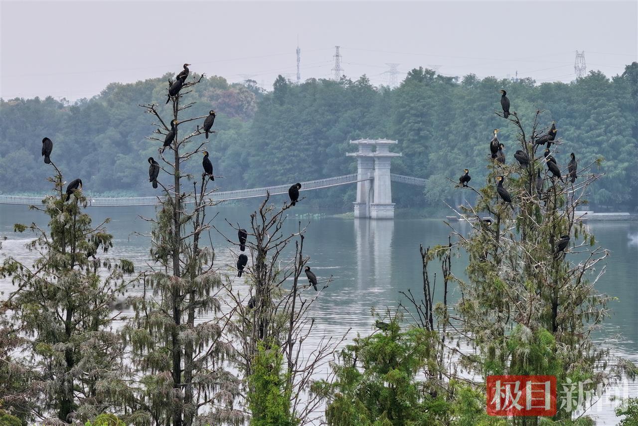 据悉,作为冬候鸟的鸬鹚,每年10-11月都会不远万里迁徙至此,来年3、4月份离去。由于东湖的生态环境持续向好,部分鸬鹚逐渐在这里“安家”,成为鸟岛的“常驻民”,每年最多时有近500只。