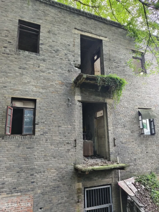 重庆发电厂的单工宿舍楼有好几栋,这栋青砖房似是时光的缄默见证者。推测它至少有50年房龄,外墙斑驳,爬满岁月痕迹,窗棂殘破,曾映照的烟火不再。 步入其中,楼道昏暗寂静,地面散落杂物,唯有绿植从缝隙倔强生长。它曾满是生活的温度,如今人去楼空,只剩往昔回忆在风中飘荡,静静诉说着工业时代的旧梦。