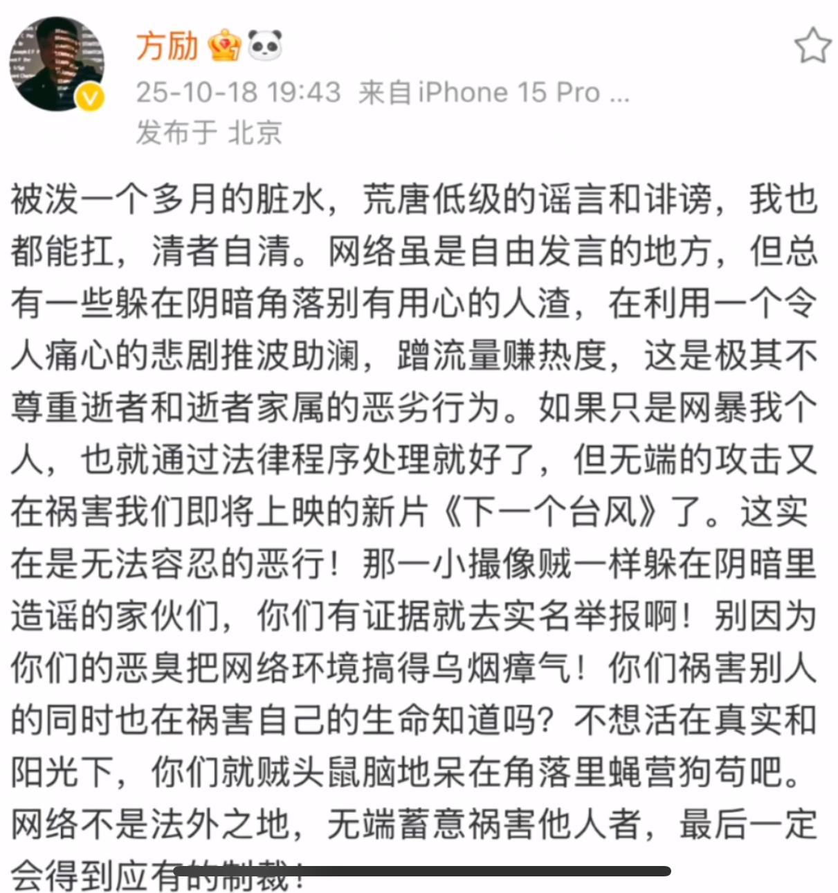 最近这是怎么了, 程青松和方励先后在社交媒体上发声, 一个发布自己的行程安排,一个坚决上映电影。 程青松视频内容做的很详细,甚至将每一个时间段的内容都详细列举出来,简直就是行走的vlog,不知道为什么他早一些没有拿出这些视频来。 而方励很直接,直接用文字来叙述,义正严辞,信心十足,让不知情者为之动容。 看来沉寂的时间够久了。