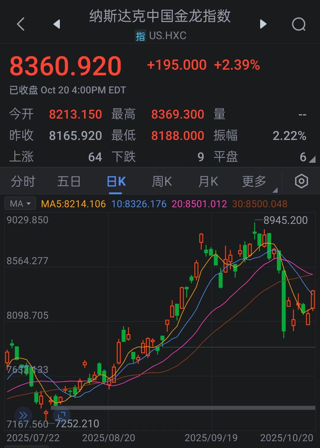 周一热门中概股普涨,纳斯达克中国金龙指数涨超2%。阿里涨超3%,拼多多涨超2%,网易涨超3%,京东涨超2%,携程、百度、腾讯音乐涨超1%,贝壳涨超2%,蔚来涨超4%。