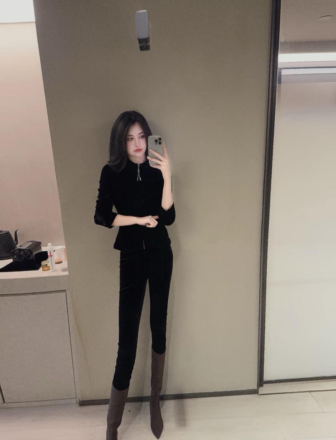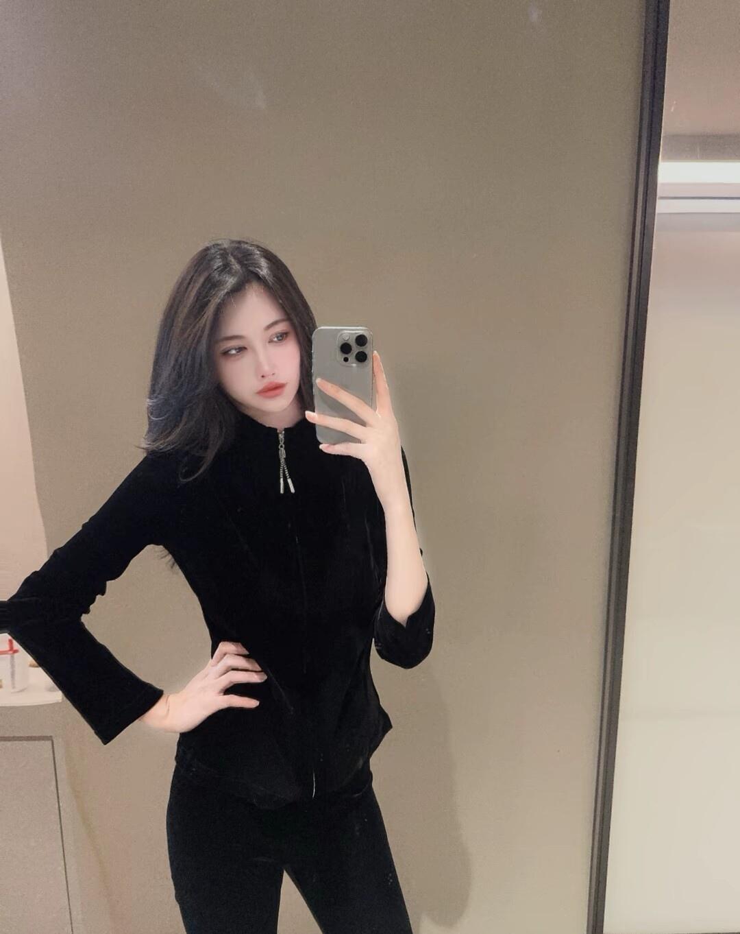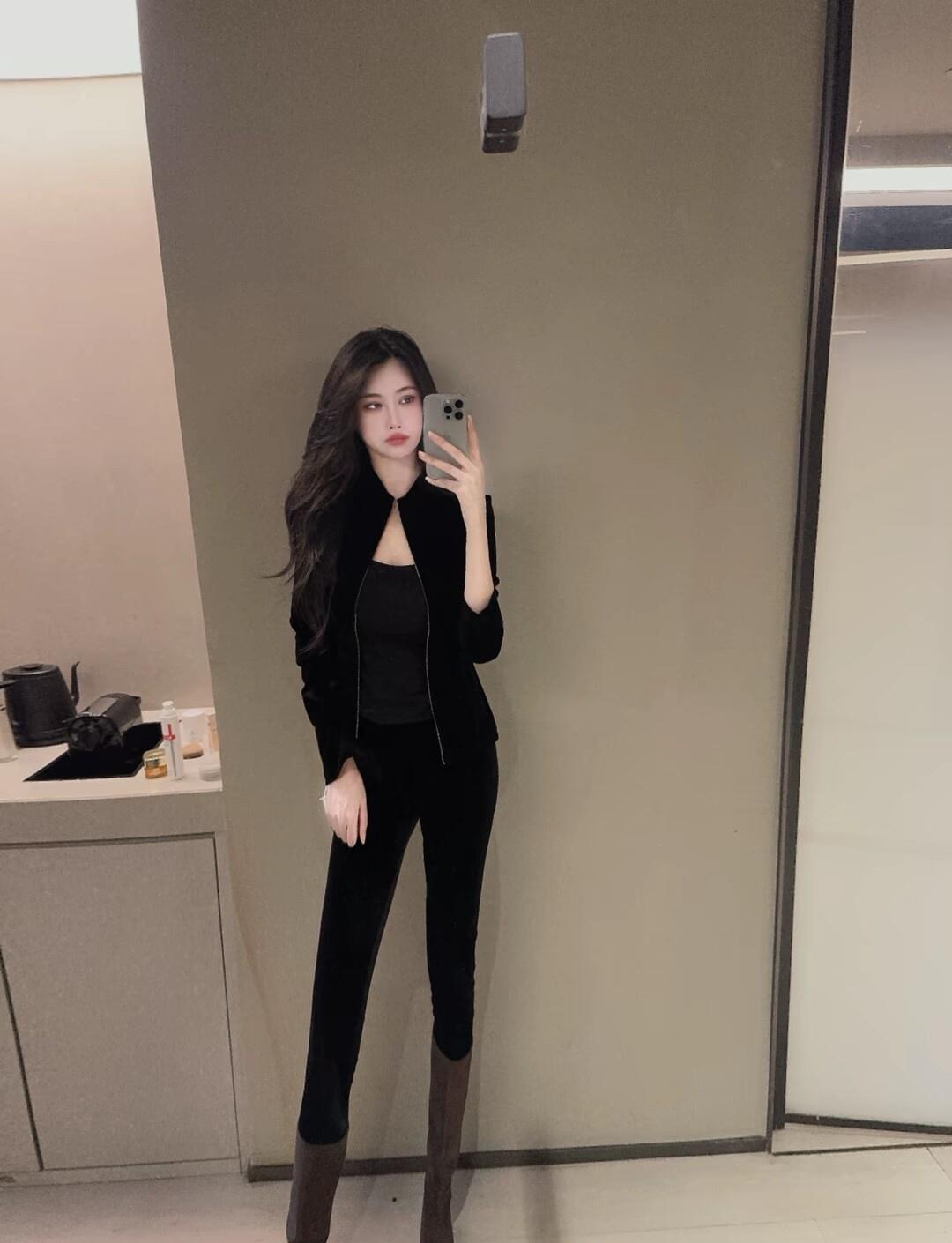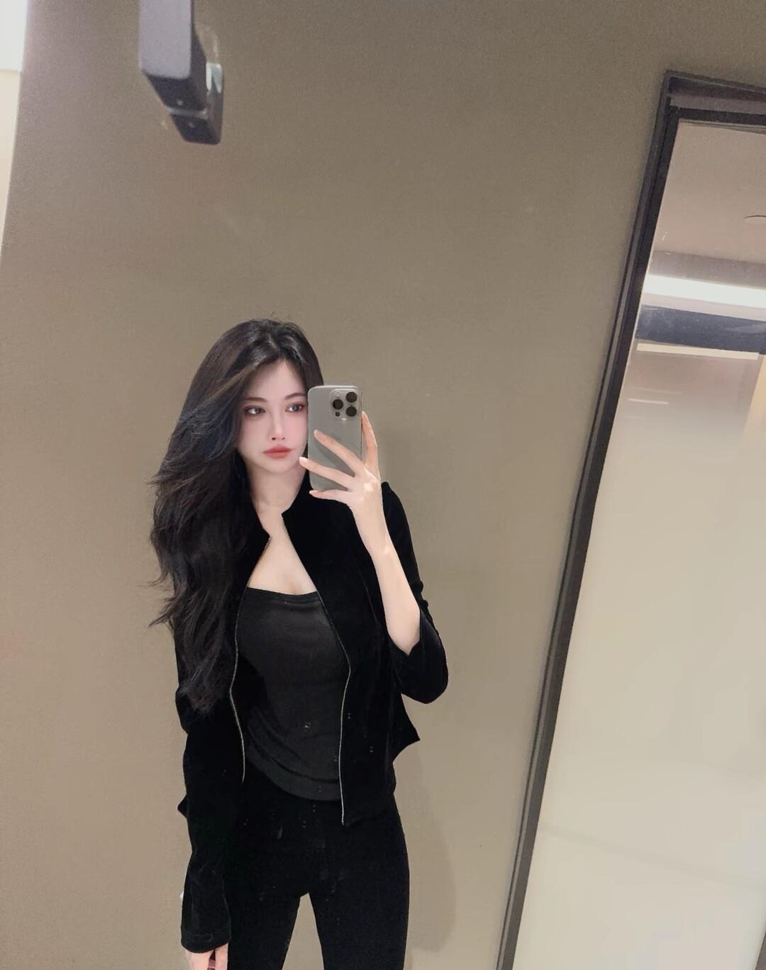 黑色皮衣搭配,自信满满,镜中自拍的酷炫瞬间!