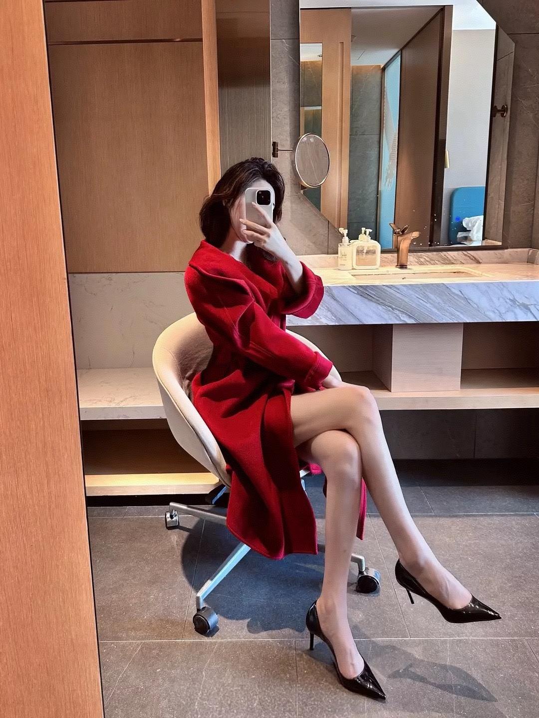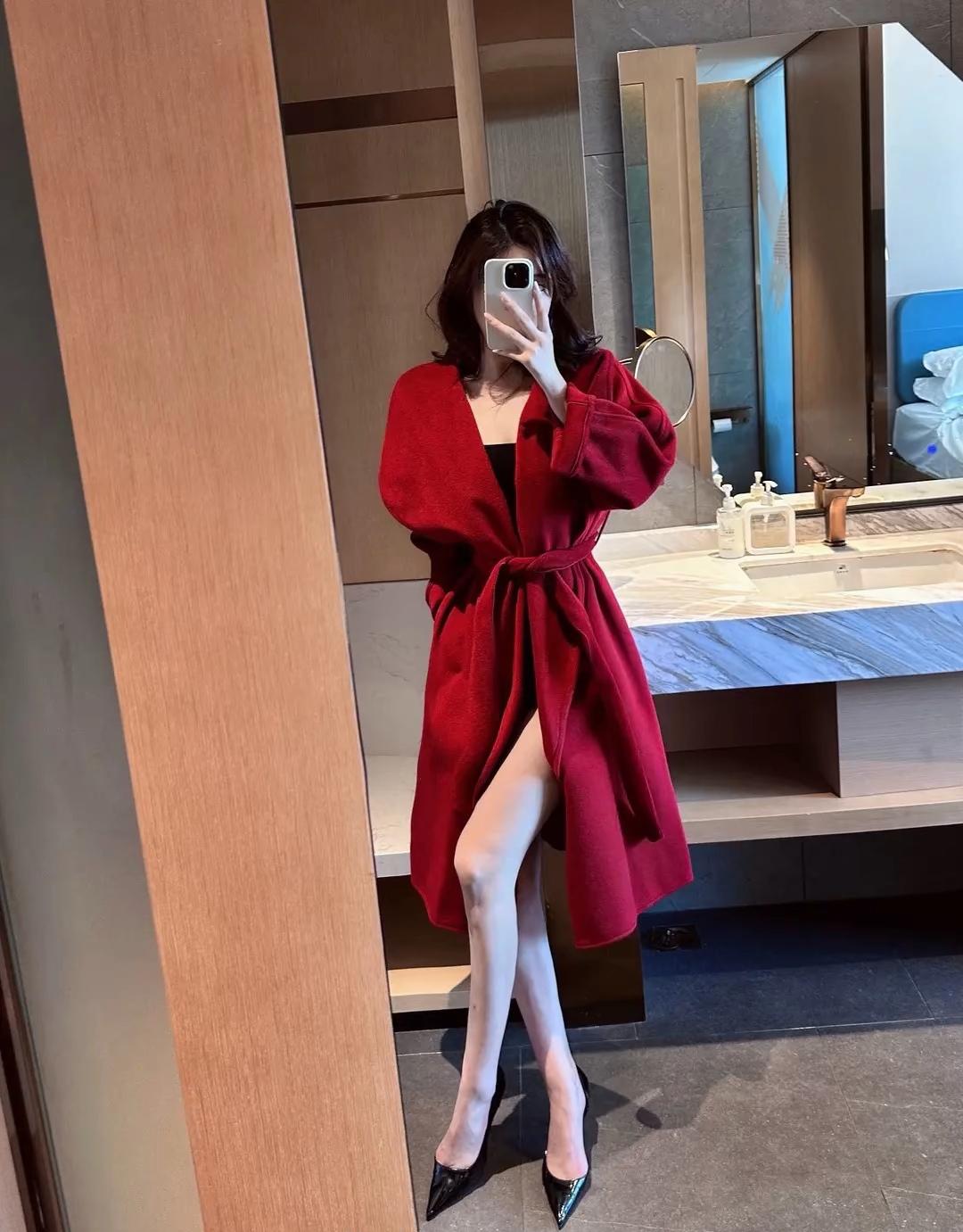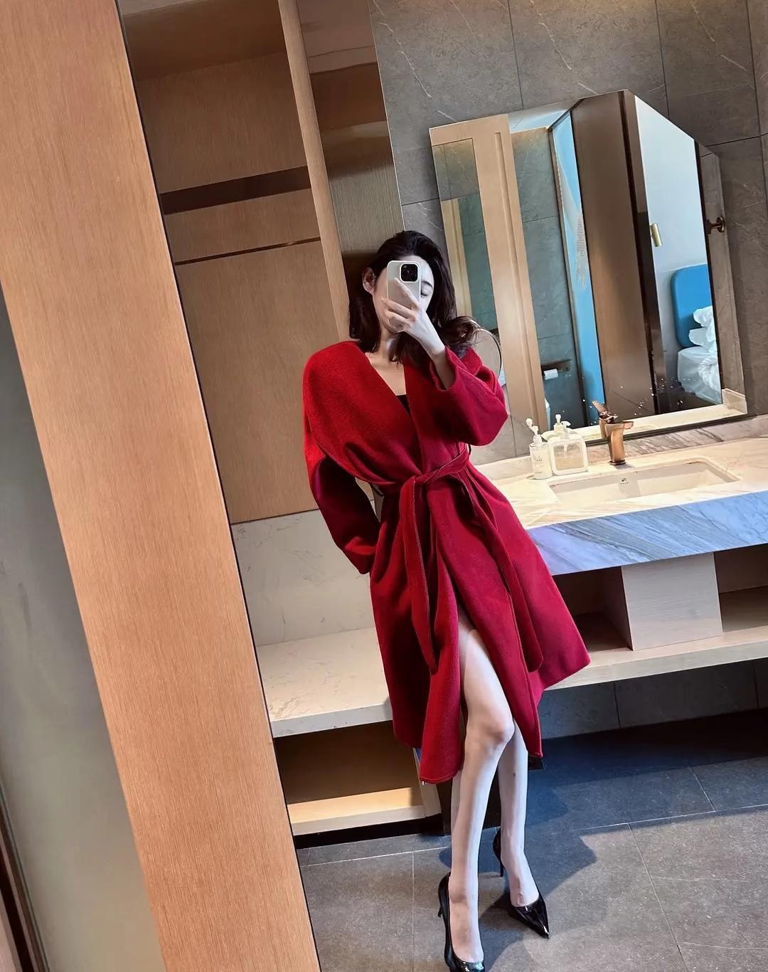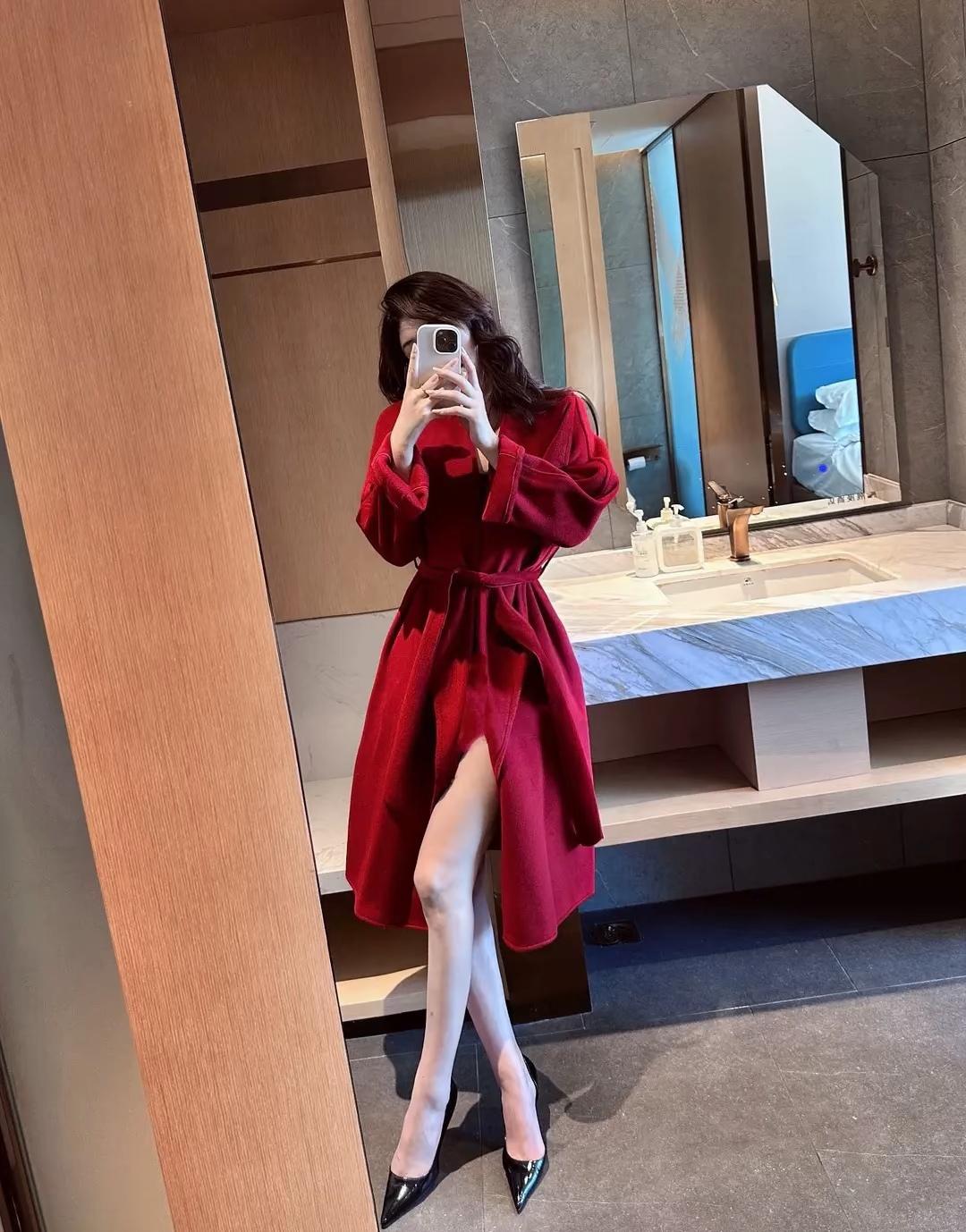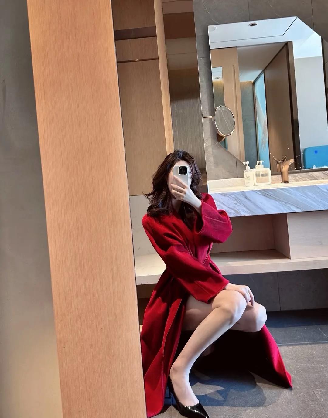红衣飘飘,镜中自拍的魅力时刻
