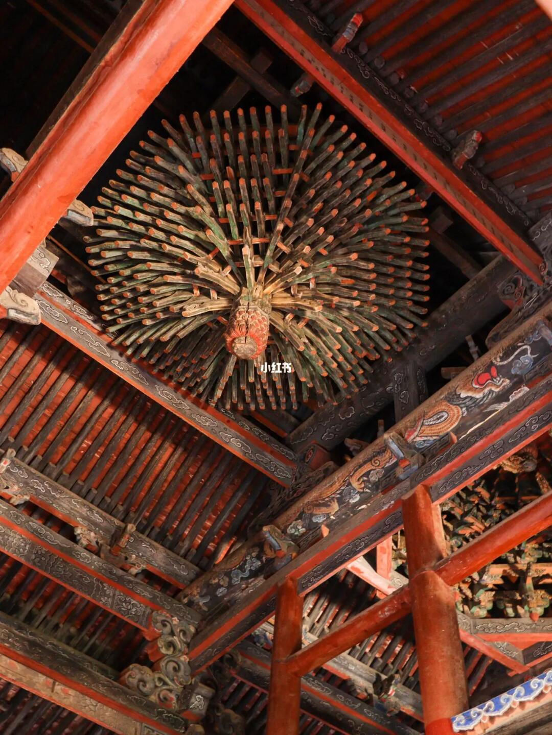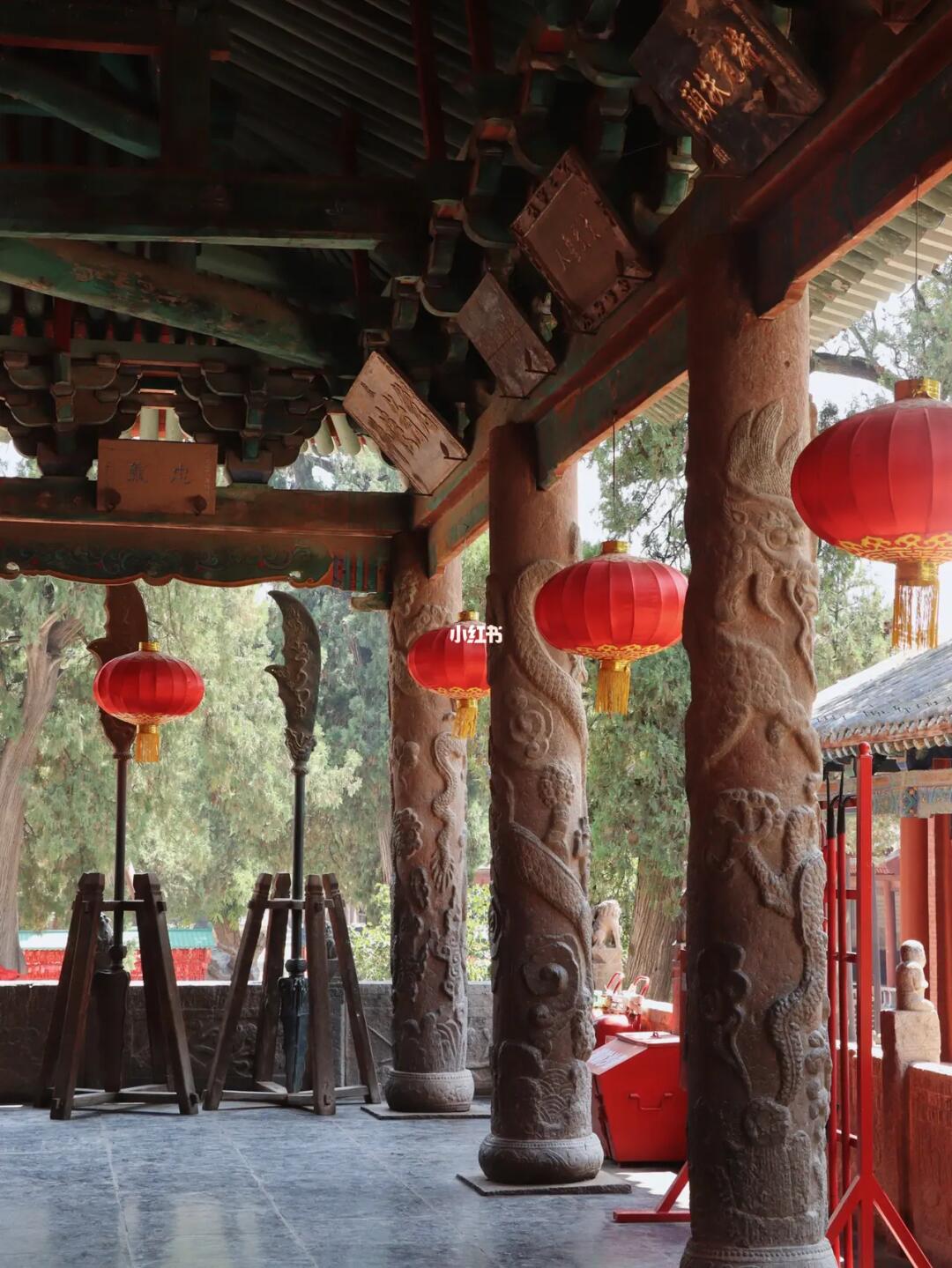 除了春秋楼,庙内悬的康熙、乾隆、咸丰御笔牌匾,御书楼的八卦藻井、崇宁殿四周的26根巨大盘龙柱都值得看。
