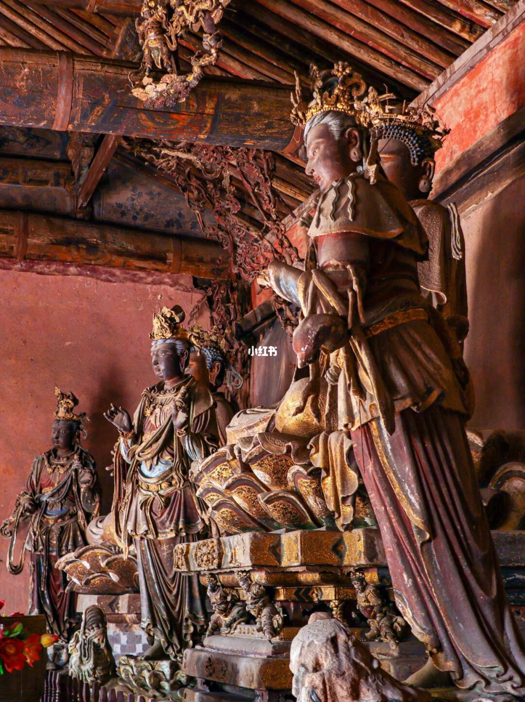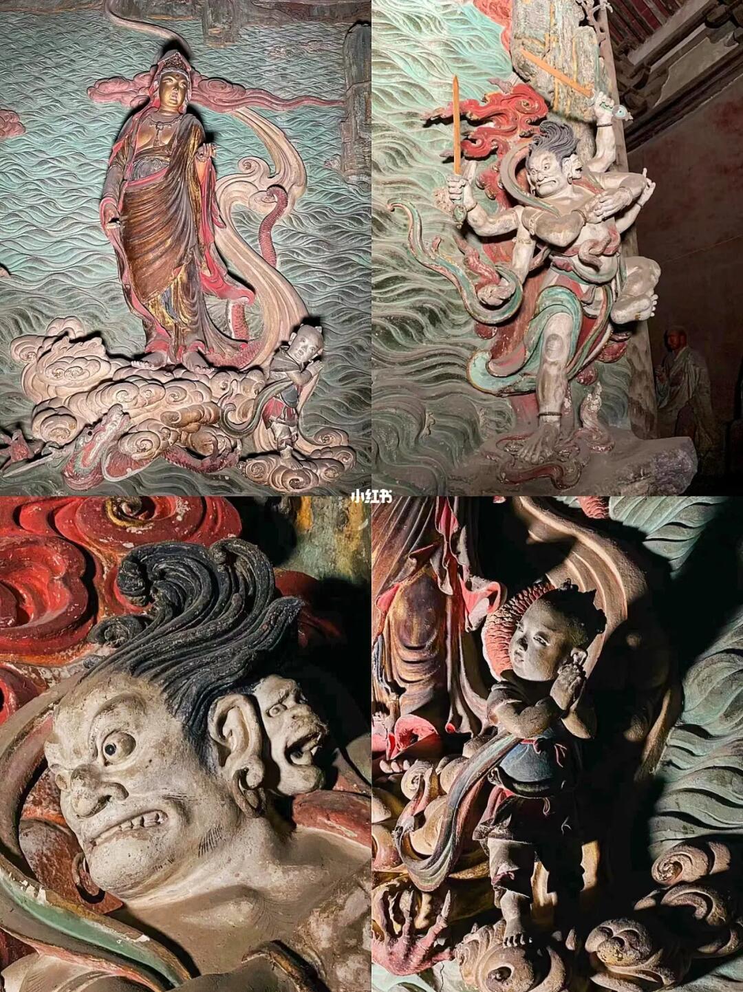 始建于唐,现基本保留明代格局。寺内有20多尊元、明精美彩塑。其中弥陀殿内的元代悬塑渡海观音脚踏祥云,碧波万顷,徐徐飘来,被誉为「最美渡海观音」。