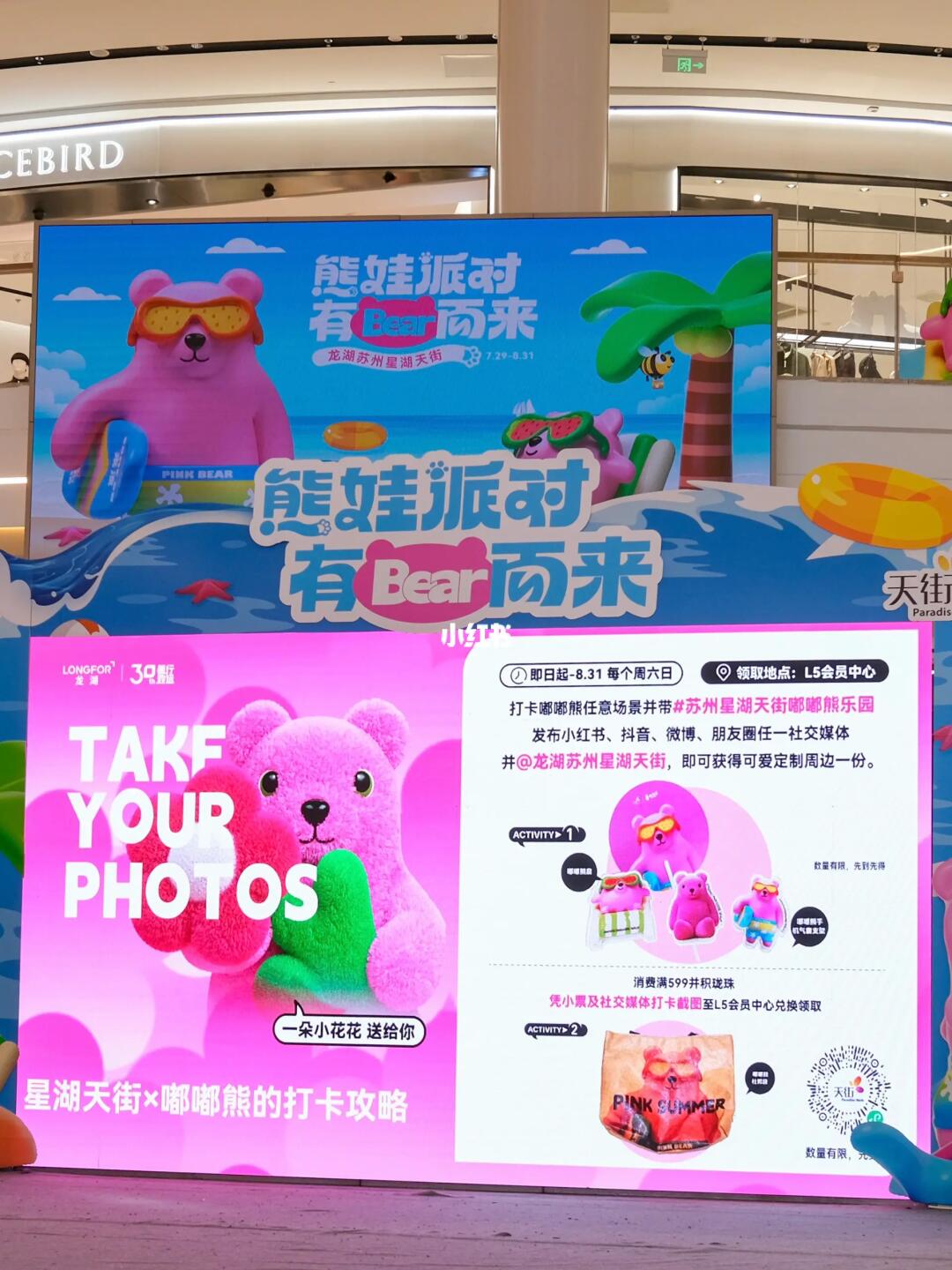 嘟嘟熊来苏州啦!就在星湖天街 2号门口一只巨型粉色嘟嘟熊 以及4号门口的嘟嘟熊乐园 简直不要太可爱!太好拍!💕 - 七夕商城里还有告白大屏 不少店铺都有专属优惠活动 如果七夕还没决定好去哪里 请盲选星湖天街好嘛! -