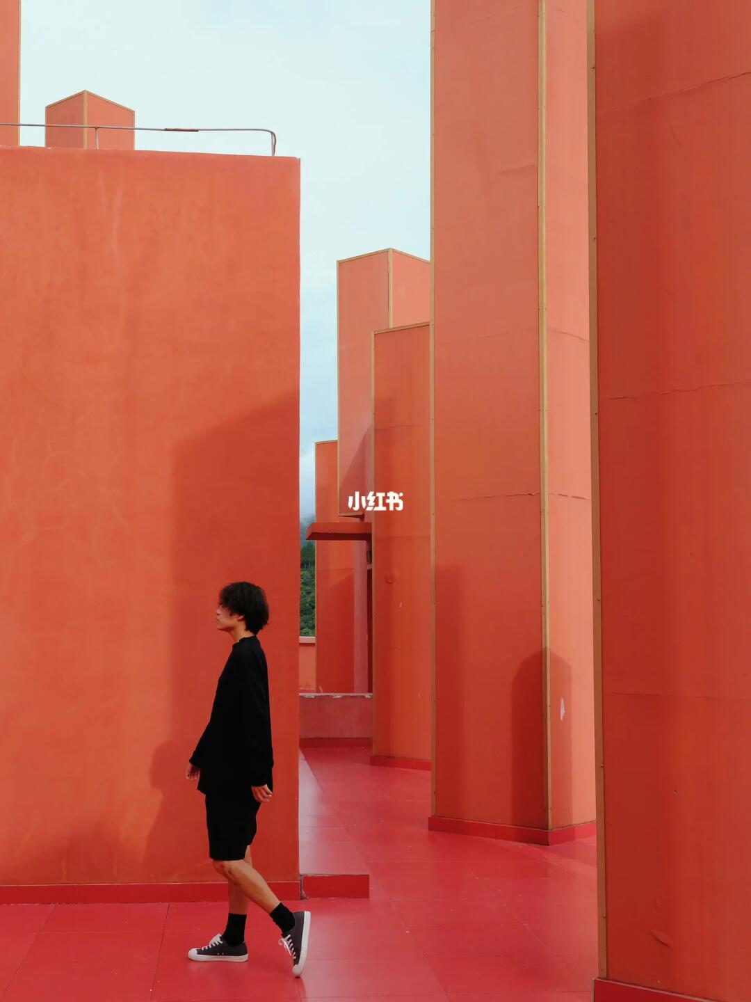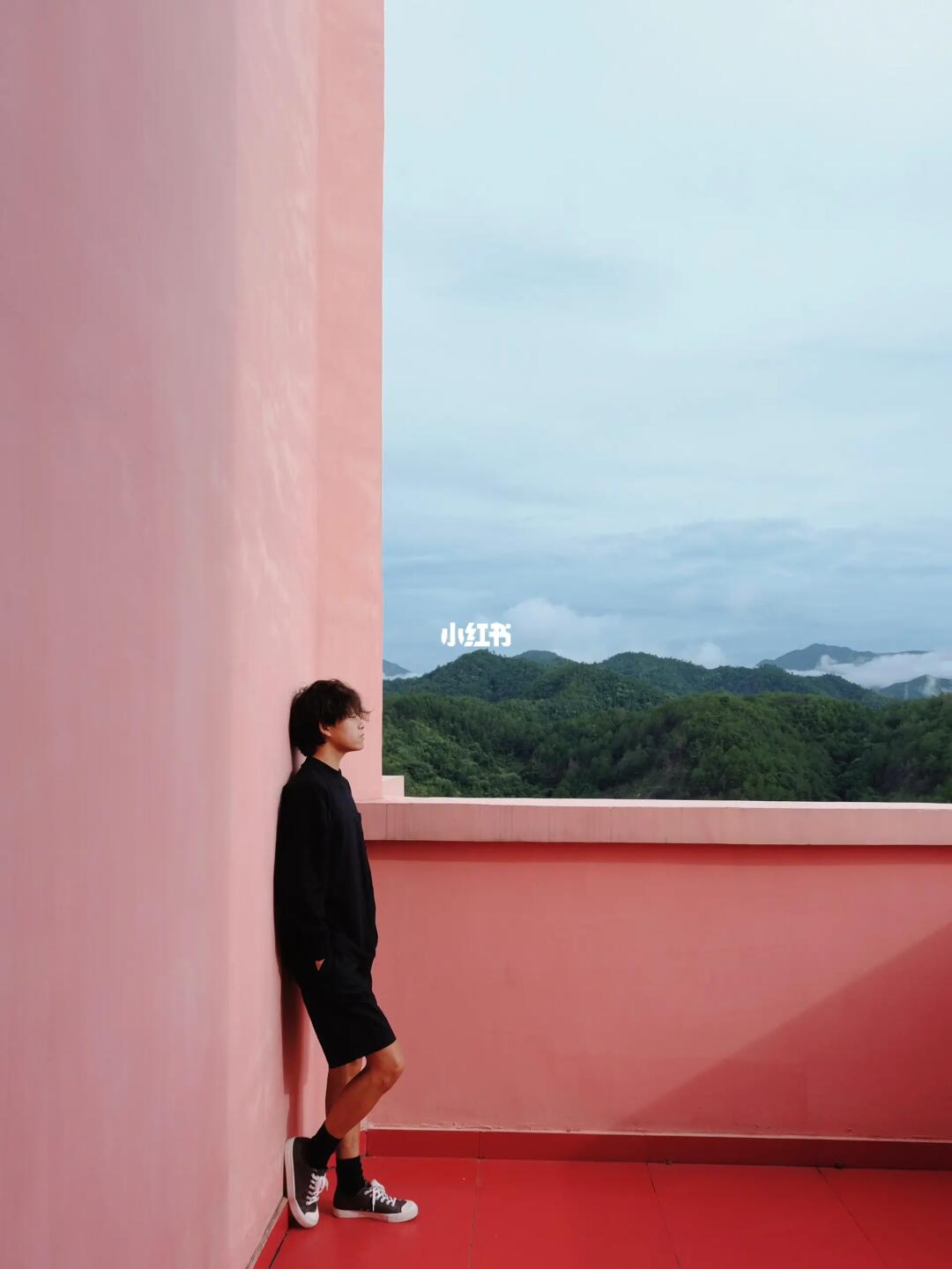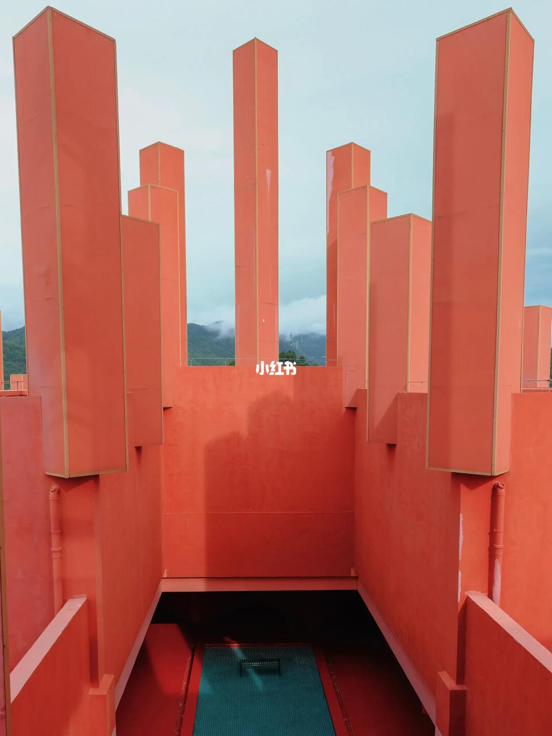楼顶天台由无数根高低不一的积木矩阵组成粉色森林