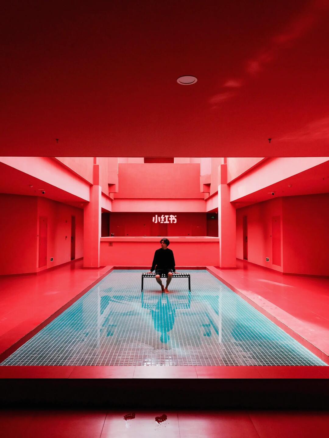 三层的水池可从高处俯拍,也可以利用空间的变化获得不同角度的机位