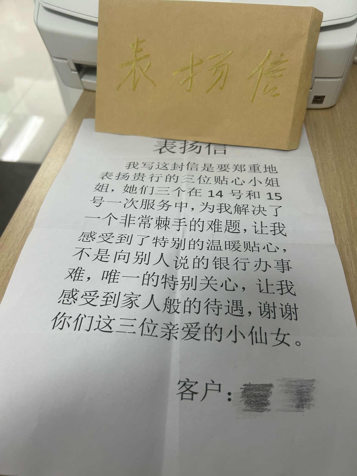 当天下午,袁女士补全材料后再次到店,行内工作人员全程陪同办理,仅用20分钟就完成了信息更新和密码重置,顺利取出学费。“全程没让我多跑一趟,还这么有耐心,真是太感动了!”袁女士说,这才有了送感谢信致谢的一幕。
