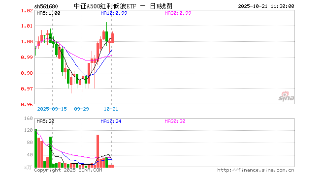 10月21日,截止午间收盘,中证A500红利低波ETF(561680)涨0.50%,报1.005元,成交额737.42万元。中证A500红利低波ETF(561680)重仓股方面,农业银行截止午盘涨1.29%,雅戈尔涨0.53%,交通银行涨0.57%,中国银行涨0.37%,中国神华跌1.73%,云天化涨0.73%,江苏银行涨0.37%,工商银行跌0.13%,邮储银行跌0.18%,格力电器涨0.00%。
