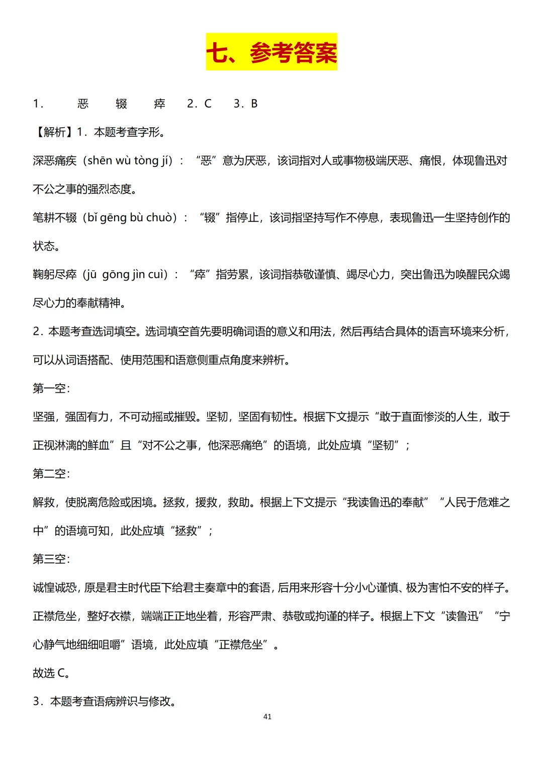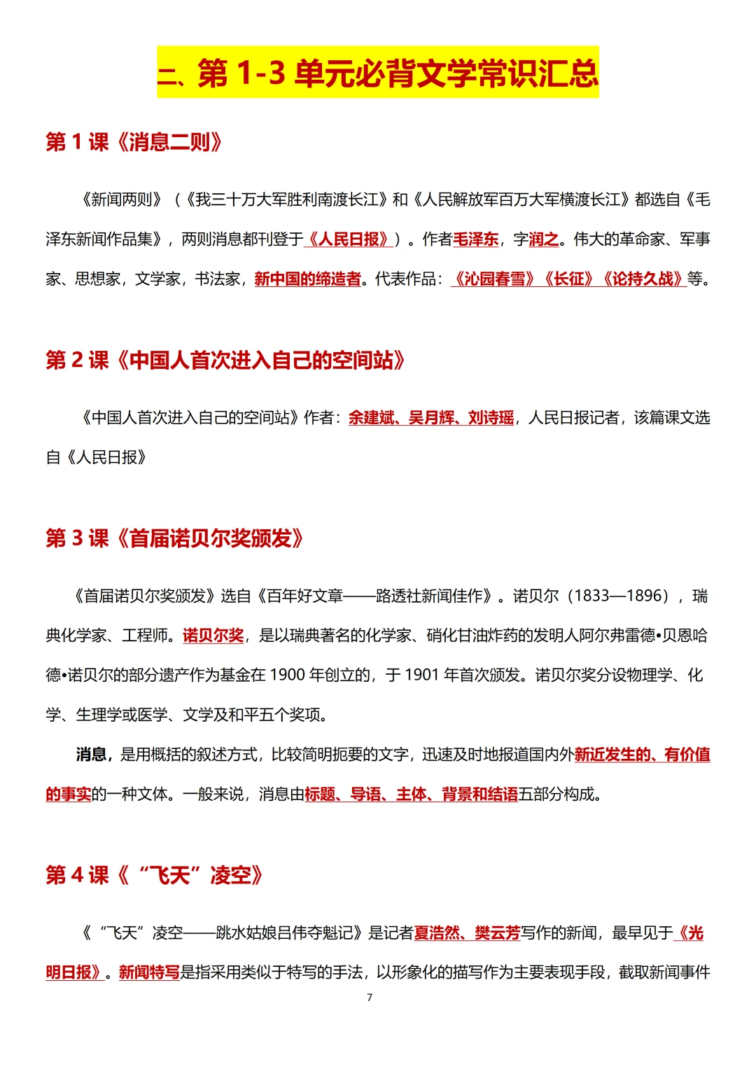 包含前3单元14课的每课文学常识,其中古诗文的文学常识是重中之重!例如:《钱塘湖春行》作者是白居易,唐代著名诗人,字乐天,自号香山居士,又被称为“诗王 ”“诗魔”。