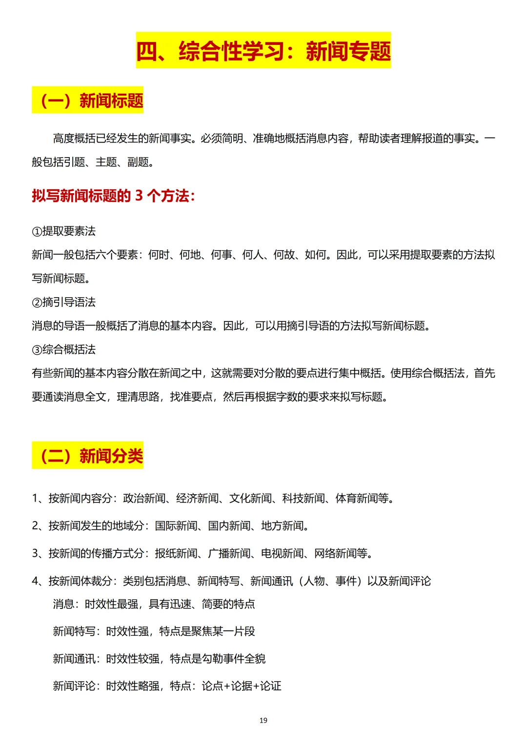 新闻是八上新学的文体,也是期中考试的重点,必须掌握新闻标题、新闻分类和新闻采访。