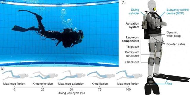 “人类在水下运动时需要克服阻力,能量消耗远高于陆地,这限制了潜水员的续航能力和作业范围。”王启宁说,近年来,新兴的下肢外骨骼技术已在陆地行走、跑步等场景中展现出巨大潜力,课题组希望将该技术应用于水下环境,以提升人类的潜水效率。