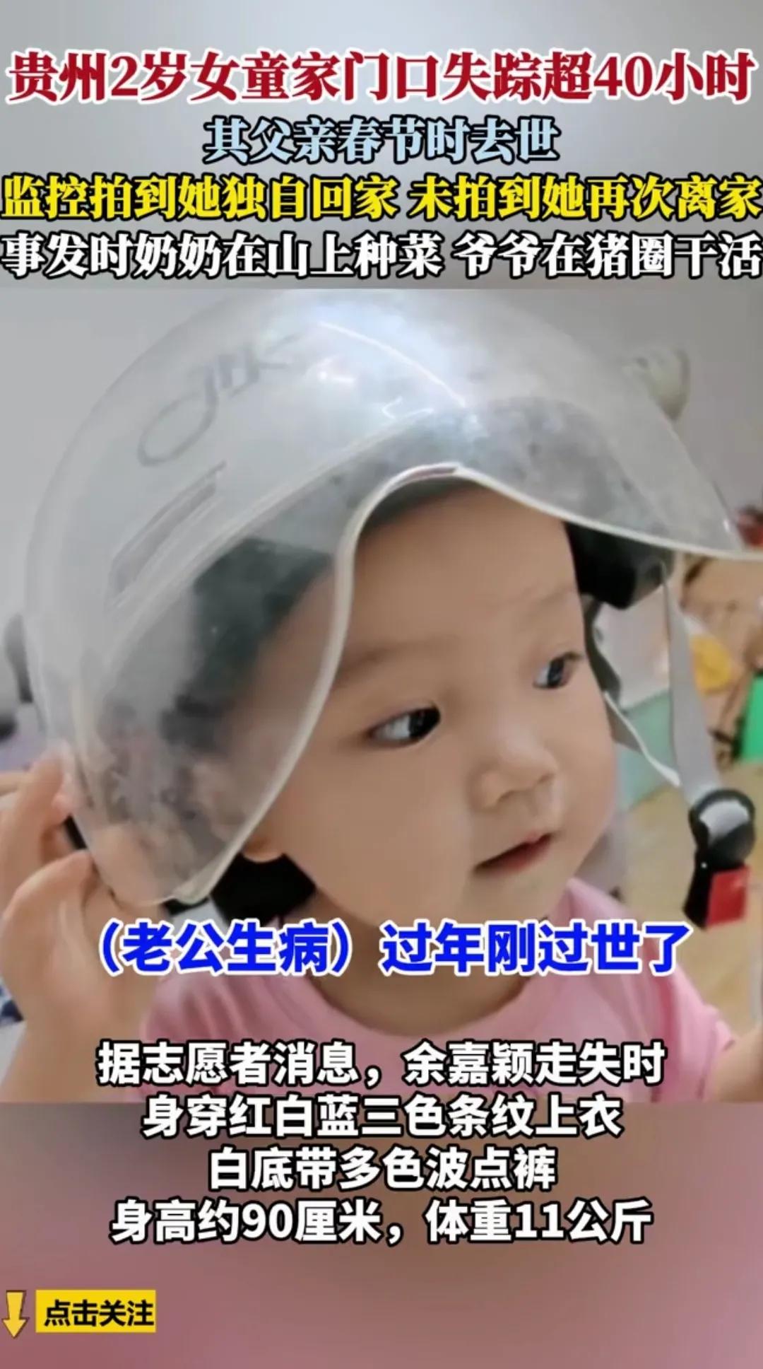 家人们,咱得说道说道贵州这事儿!孩子的安全问题真的容不得一丝马虎啊! 10月17日下午3点左右,贵州雷山县望丰乡排肖村的2岁女童余嘉颖,就在家门口失踪了。孩子爸爸春节时去世了,妈妈在江西打工,平时跟着爷爷奶奶生活。当时奶奶在菜园,爷爷在屋里干活,孩子独自回家后在门口玩着就不见了。家里没监控,路口监控也坏了,可急坏了家人。公安带着无人机、警犬,村民们也有五六十人一起帮忙找。 好在19日晚6点30分,孩子平安找到了,已经送去医院检查。 这事儿给家长们提了个醒,一定要照看好孩子,不能有一点儿疏忽。也得给参与搜救的公安和村民们点赞,大家齐心协力,才让孩子平安归来。希望以后这样的事少一些,每个孩子都能平平安安地长大。