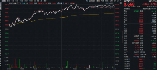 今日(10月21日)超240亿主力资金爆买电子板块,板块吸金额高居31个申万一级行业首位!热门ETF方面,覆盖半导体+苹果产业链的电子ETF(515260)场内涨幅最高上探4.04%,收涨3.73%,一举收复5日均线。