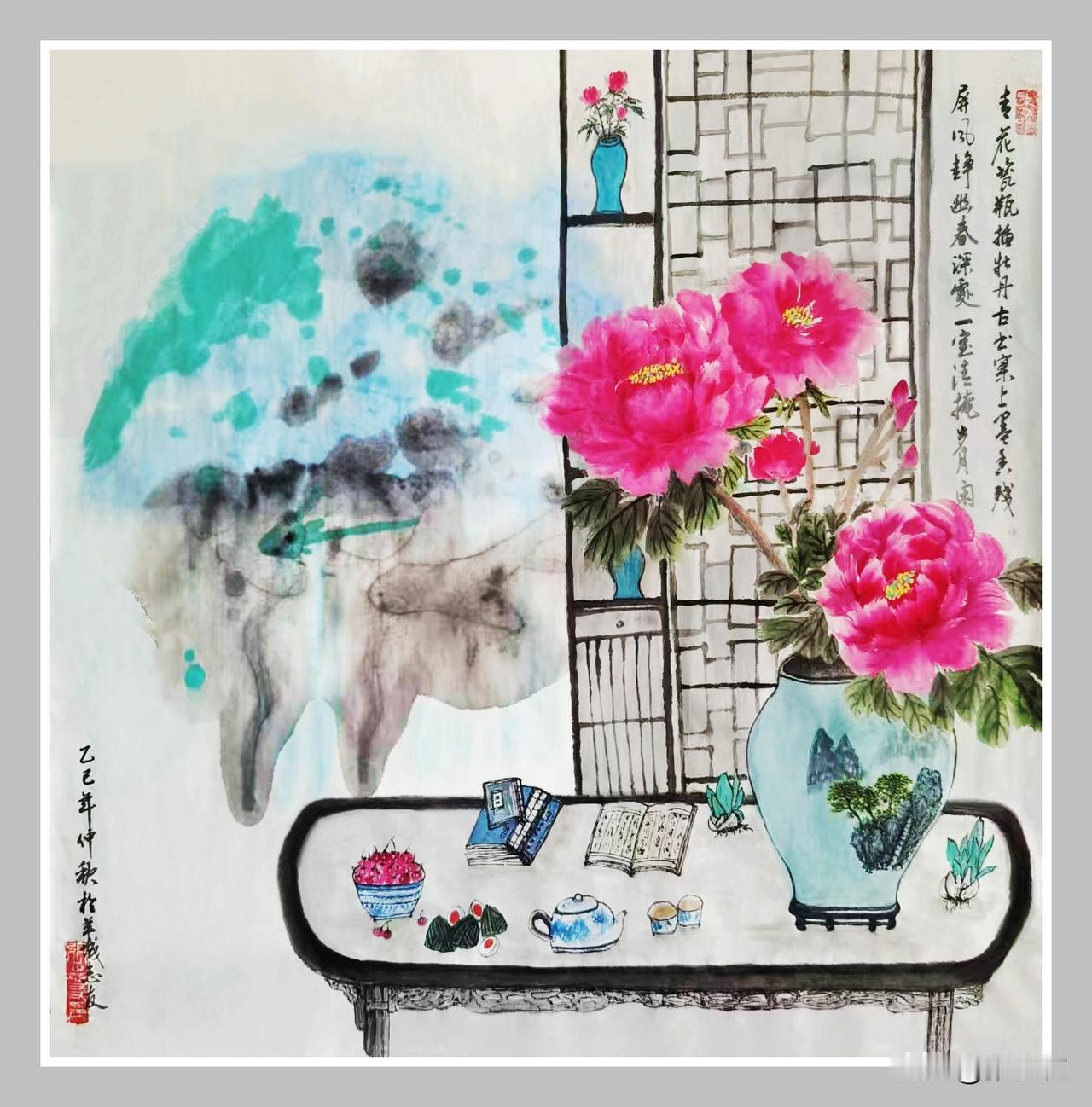 《四季.清花瓷》 国画 原创国画 陶瓷写意画 能否展示你的一幅国画山水水墨画 中国画 写意画 书画