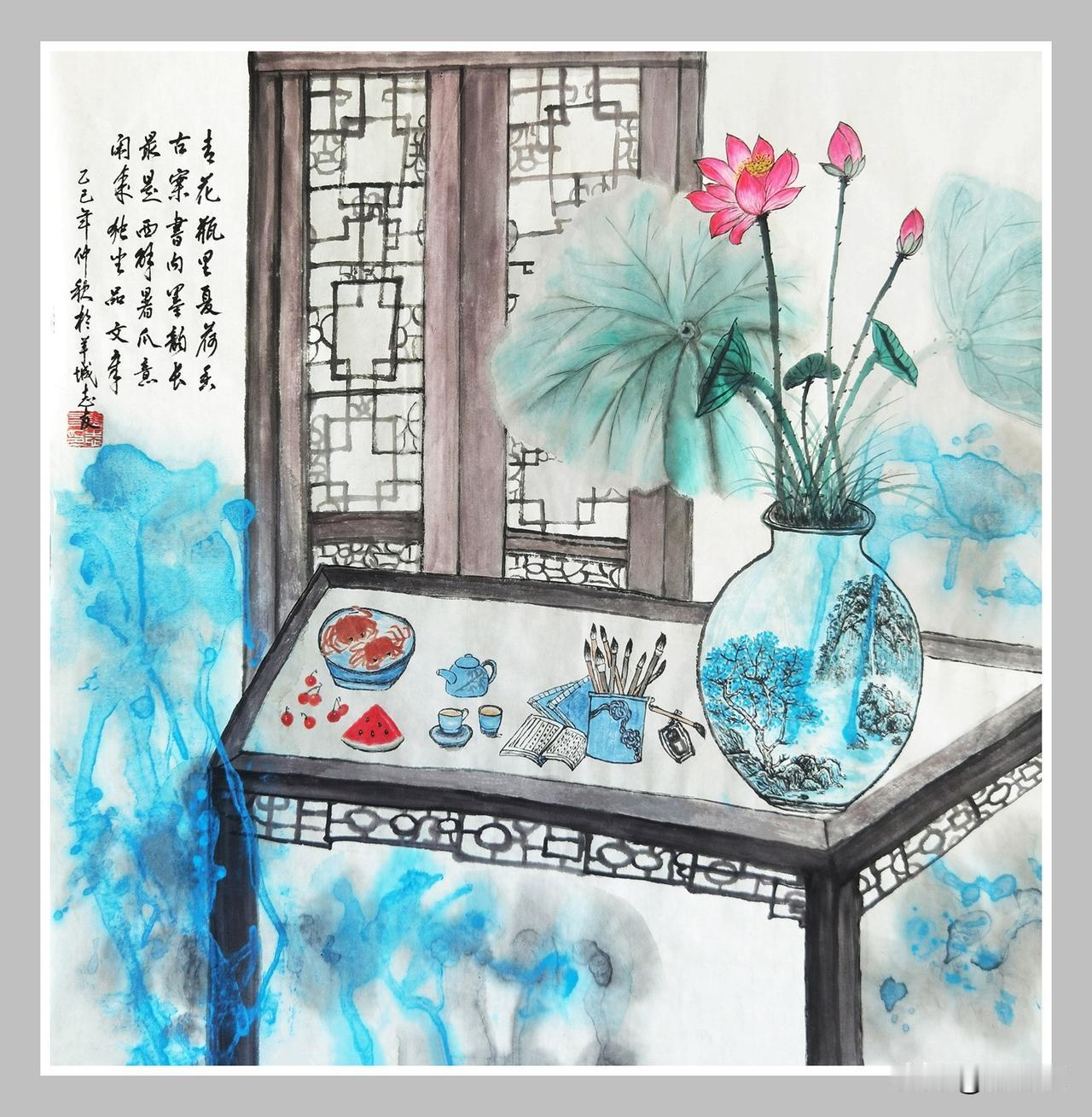 《四季.清花瓷》 国画 原创国画 陶瓷写意画 能否展示你的一幅国画山水水墨画 中