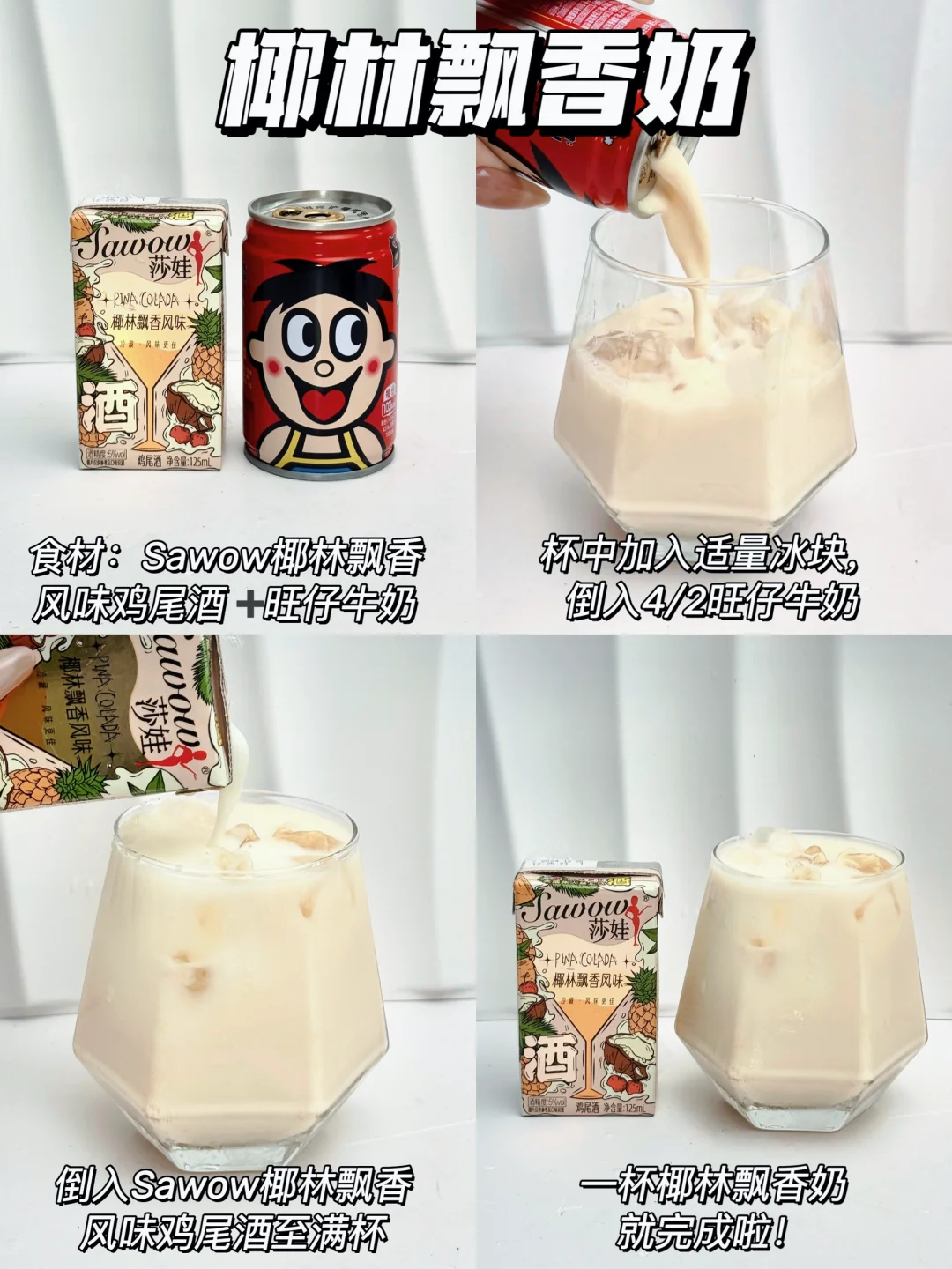 3️⃣椰林飘香奶=椰林飘香风味+旺仔牛奶