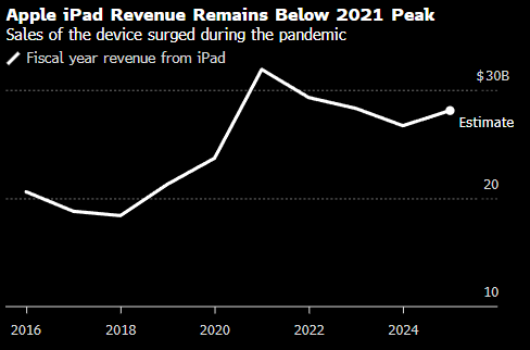 自史蒂夫·乔布斯15年前首次发布iPad以来,近年来市场对该产品的需求已有所放缓,部分消费者转向Mac电脑。尽管今年iPad销售预计将恢复增长,但营收仍远低于2021年创下的峰值。