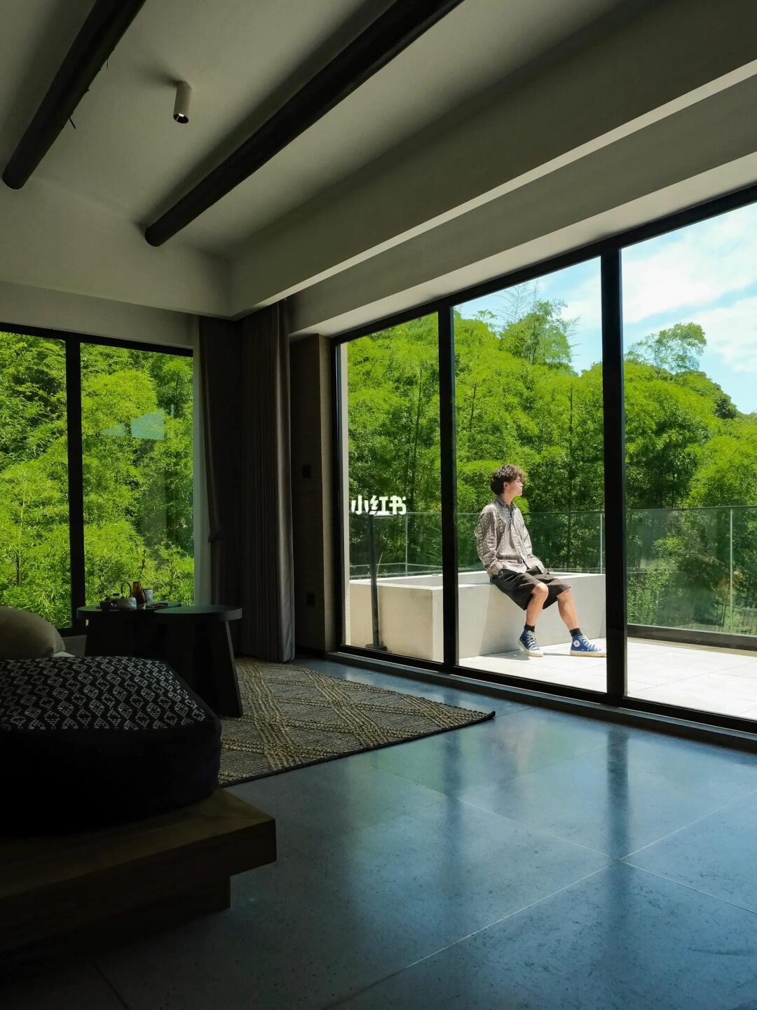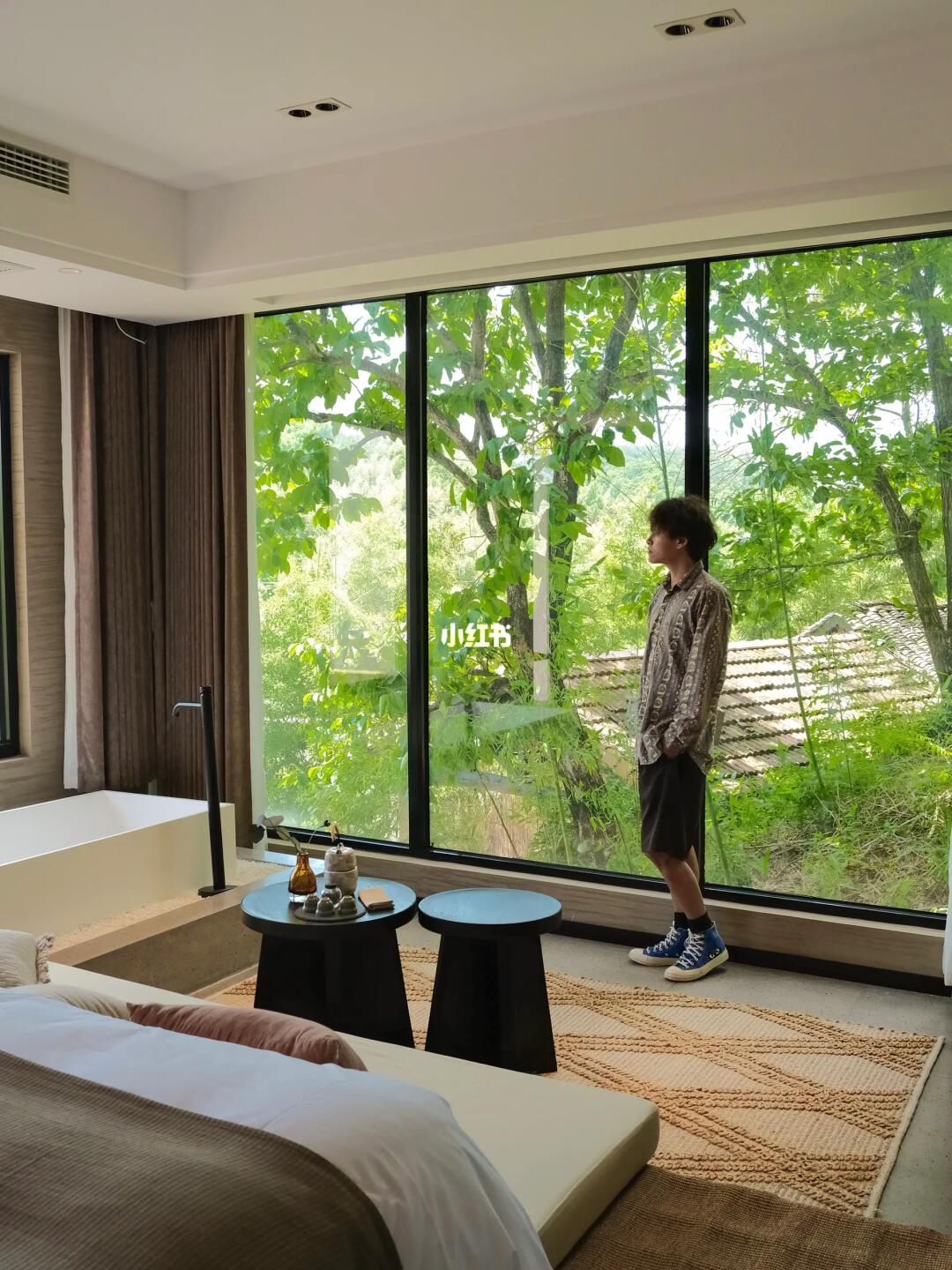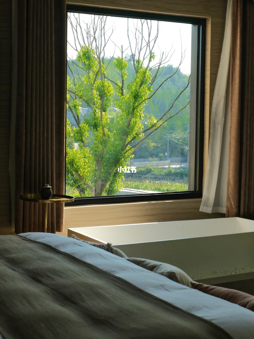 大树缝隙间洒落阳光 眺望远处峰峦叠翠