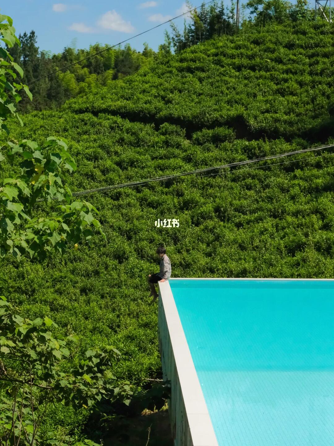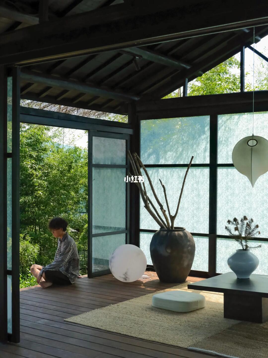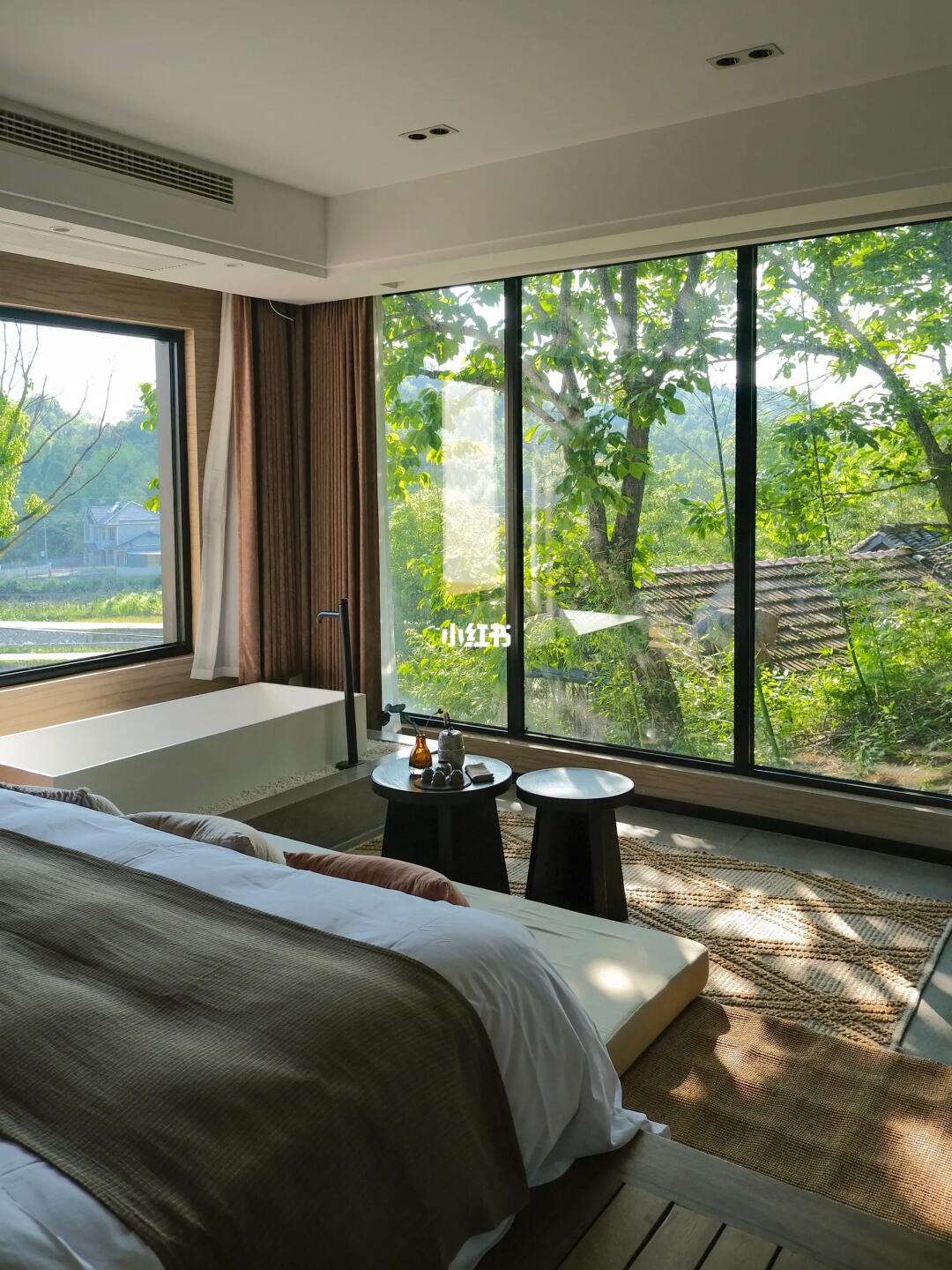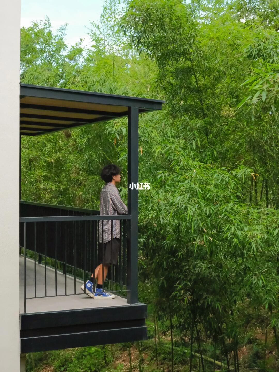 大树缝隙间洒落阳光 眺望远处峰峦叠翠