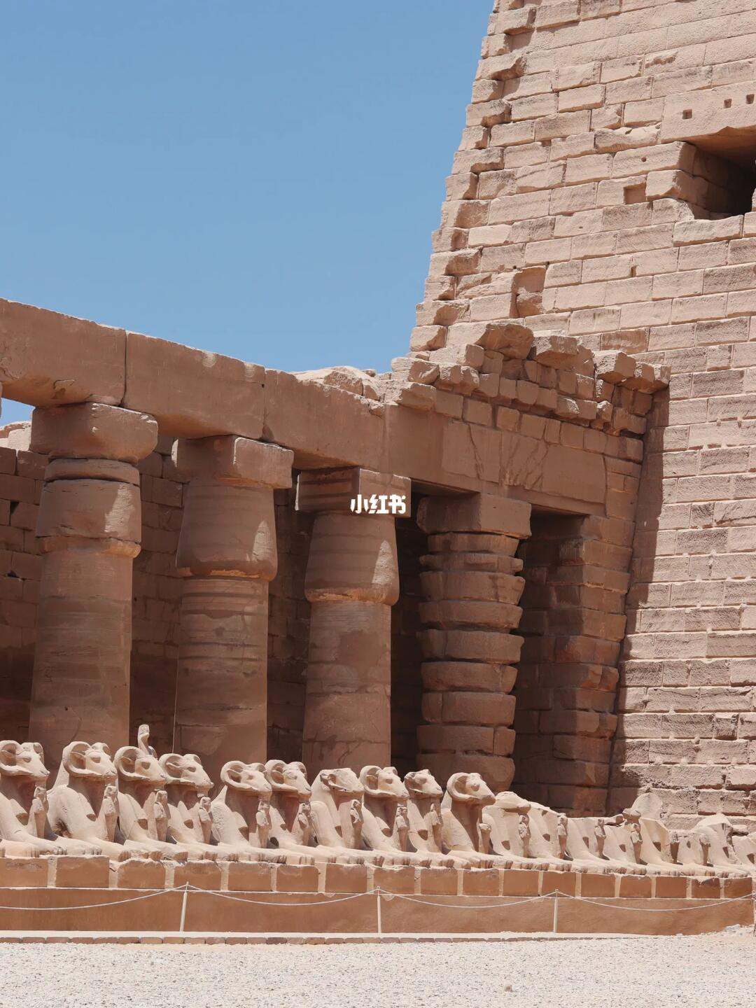 ①卡纳克神庙(图1-8):埃及大地上现存最大的神庙,’尼罗河上的惨案’取景地。主要由无数根刻满壁画和浮雕的巨型石柱撑起的主殿柱厅、拉美西斯二世巨像、女法老哈特谢普苏特建造的埃及现存最高方尖碑及狮身公羊石像等看点。